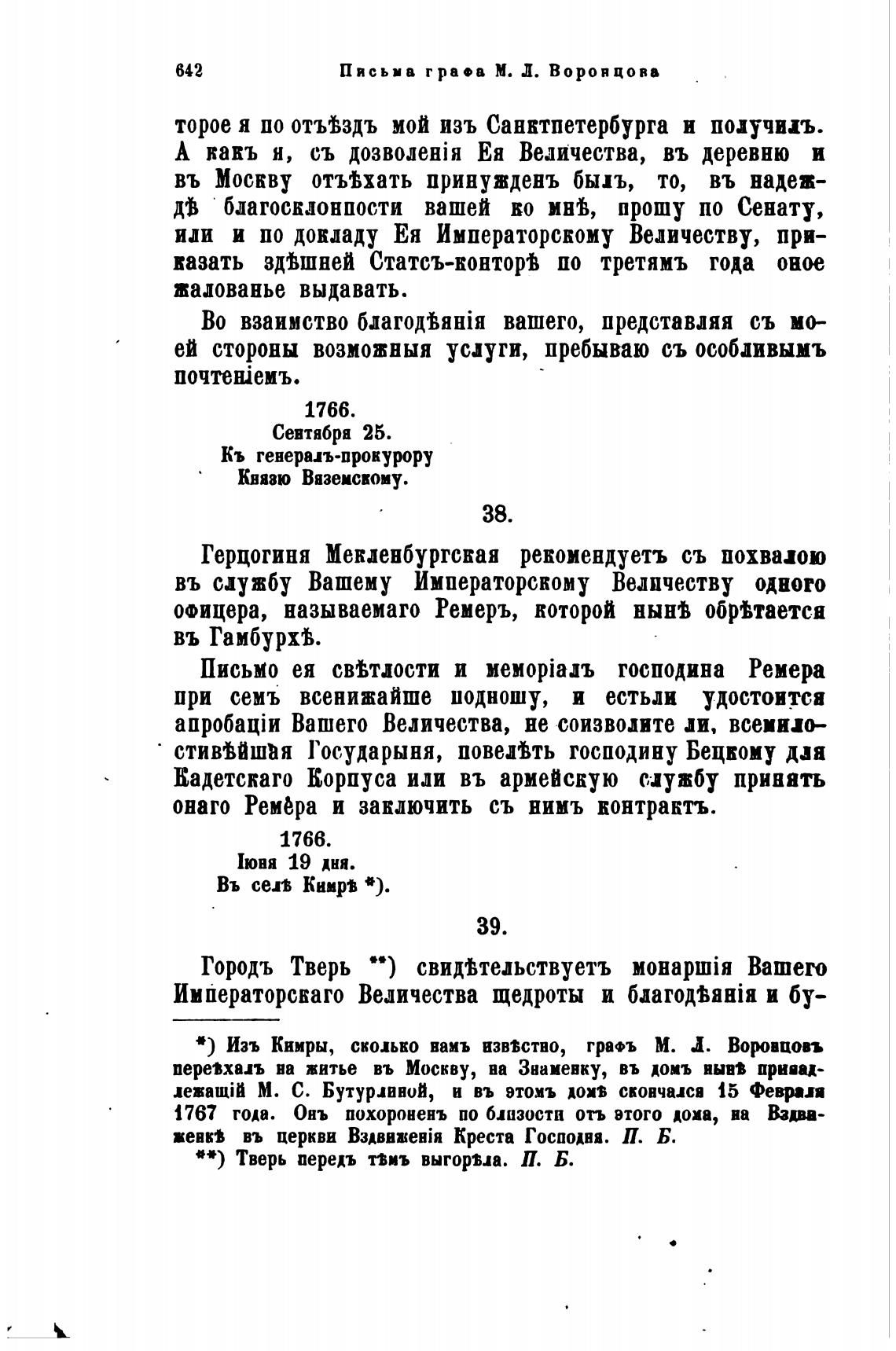 • ) Изъ Кимры, сколько ваиъ 0BtCTB0, граФъ М. Л Ворцовъ