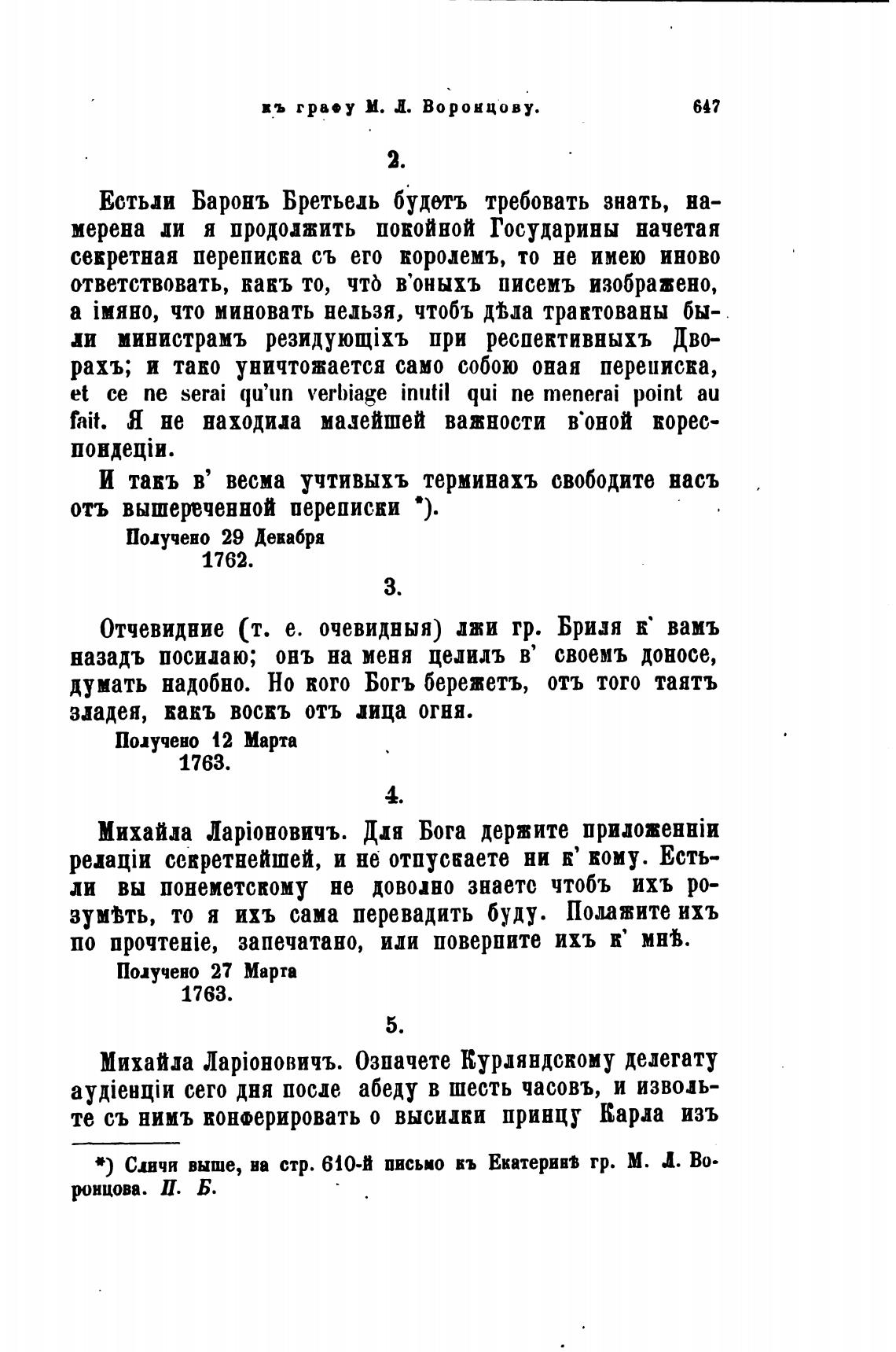 Сочи выше, на стр. 610-й письмо въ Екатеривз гр. М. Л. Во.