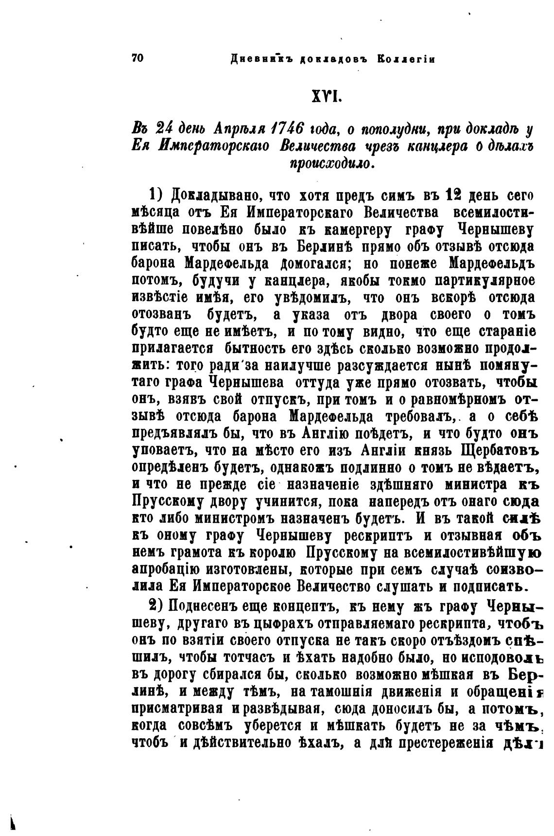 више повелно было кь камергеру граоу Чернышеву