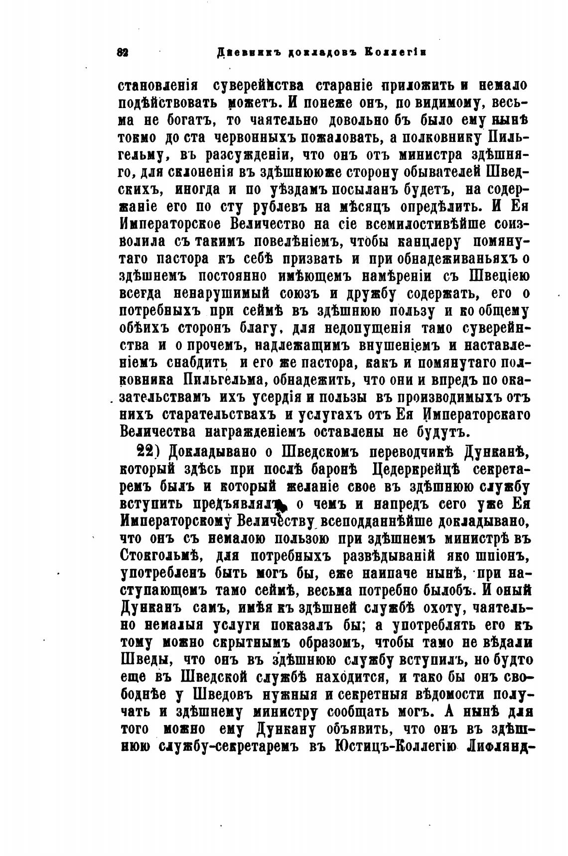 22) Докладывано о Шведскомъ переводчиВ ДунканЬ