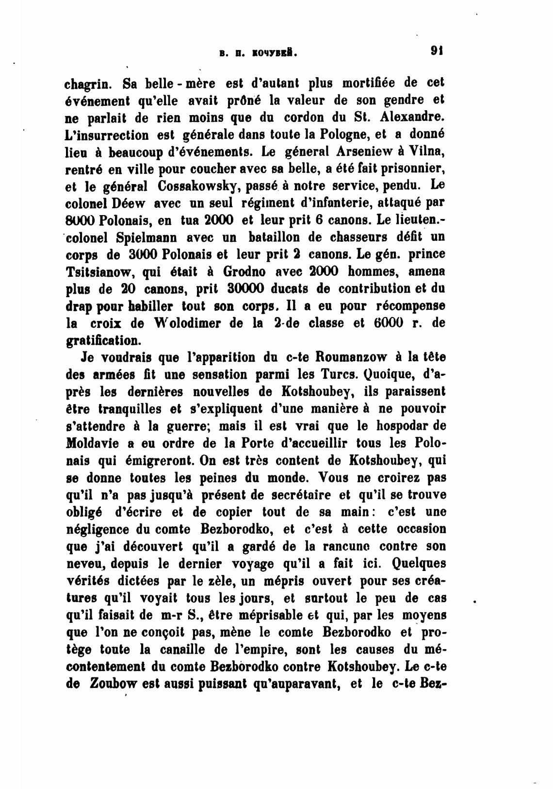 contentement du comte Bezborodko contre kotshoubey. Le c-te