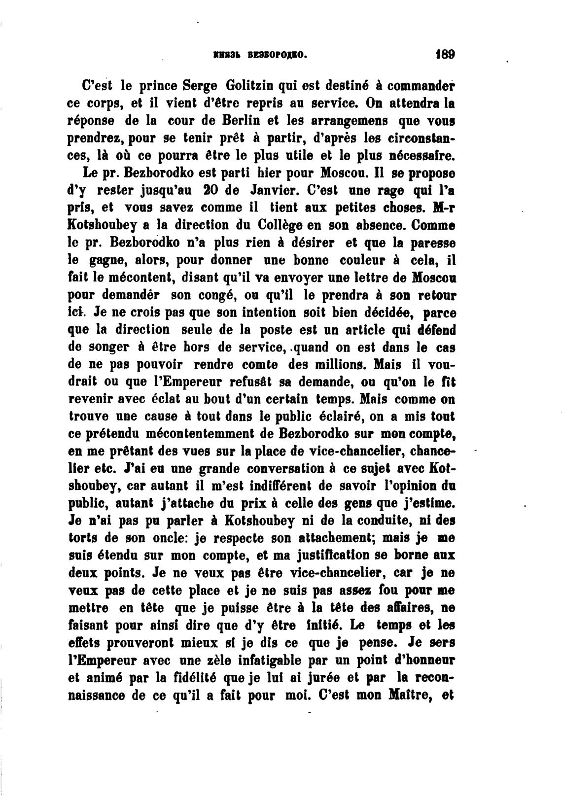 le pr. Bezborodko п'а plus rien d6sirer et que la paresse