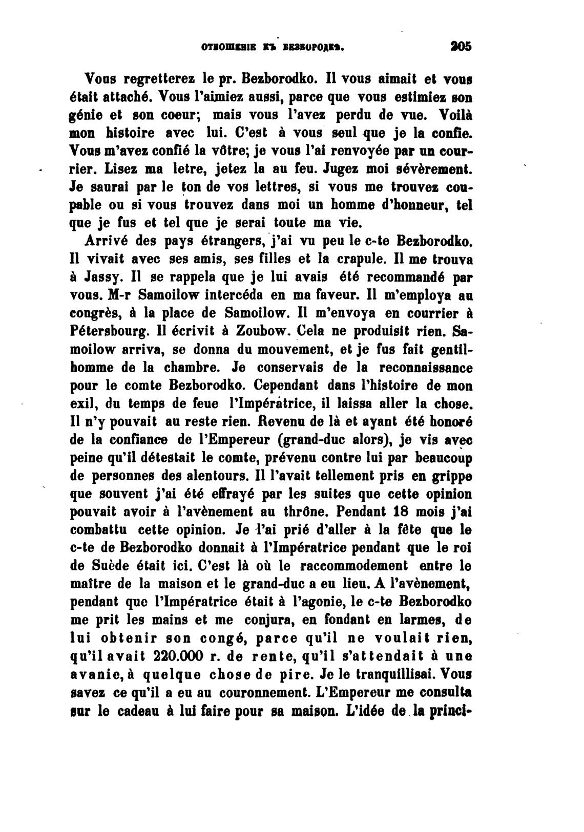 роит le comte Bezborodko. Cependant dans l'histoire de топ