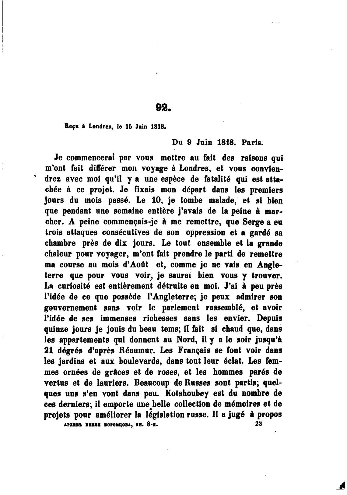 Requ Londreg, Те 16 Juin 1818.