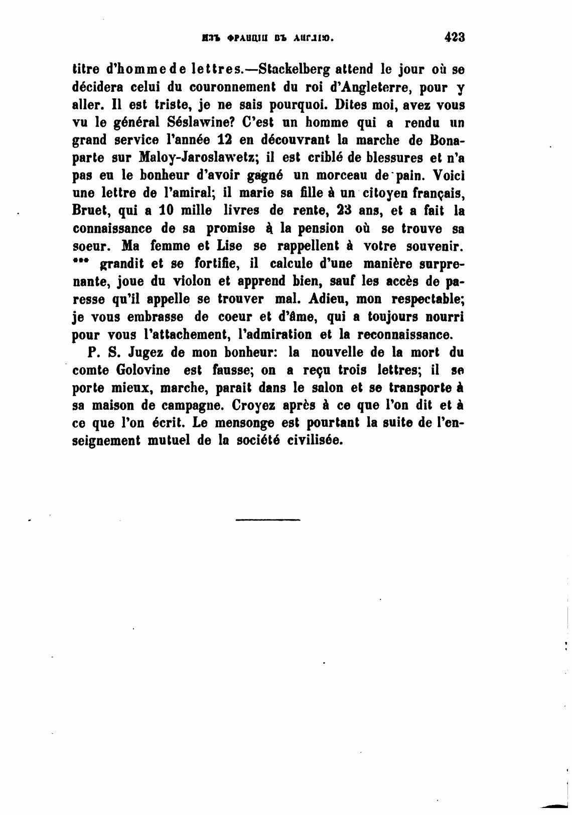 titre d'hommede lettres.—Stackelberg attend le jour ой se