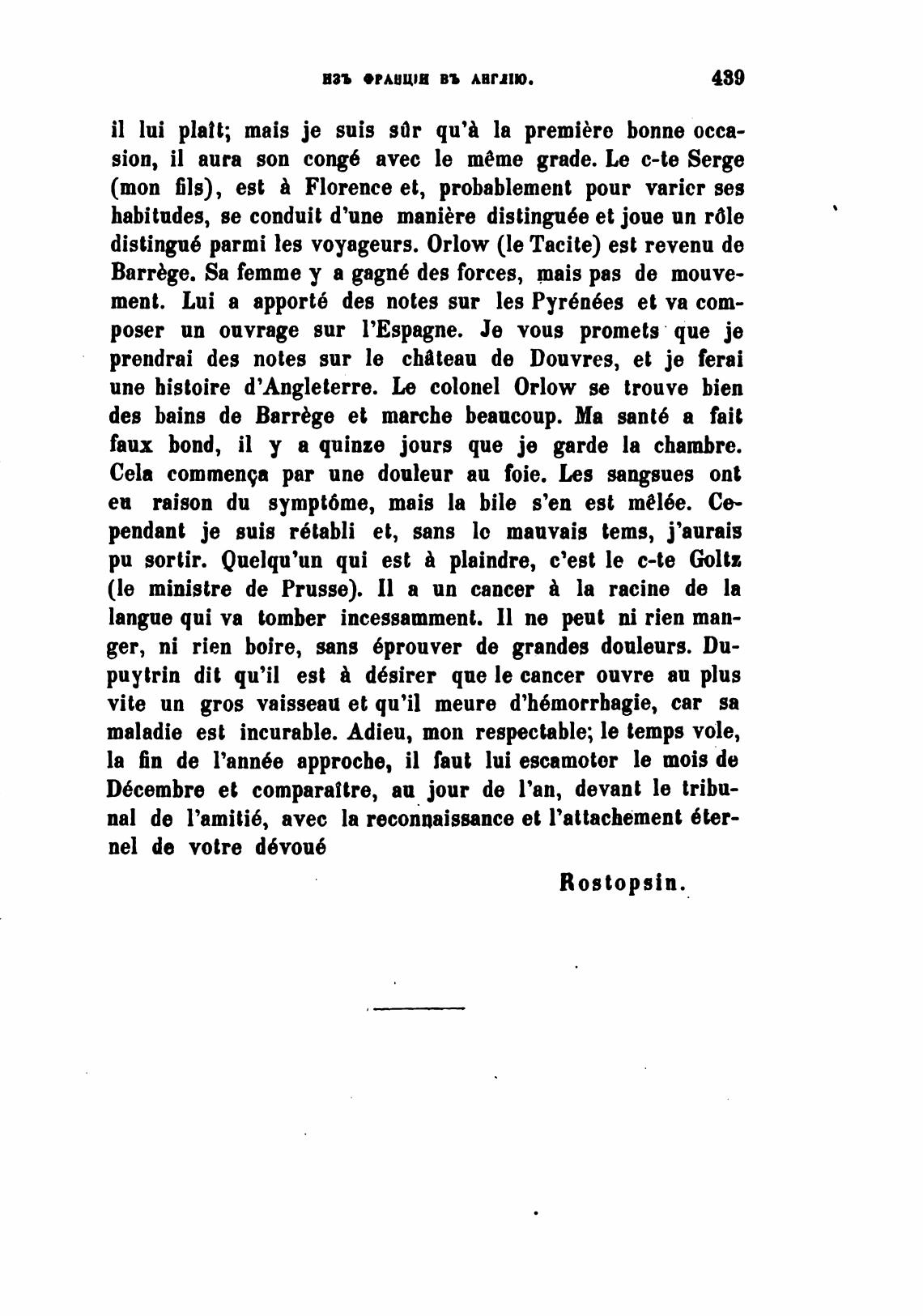 distingu6 parmi les voyageurs. 0rlow (le Tacite) est revenu de