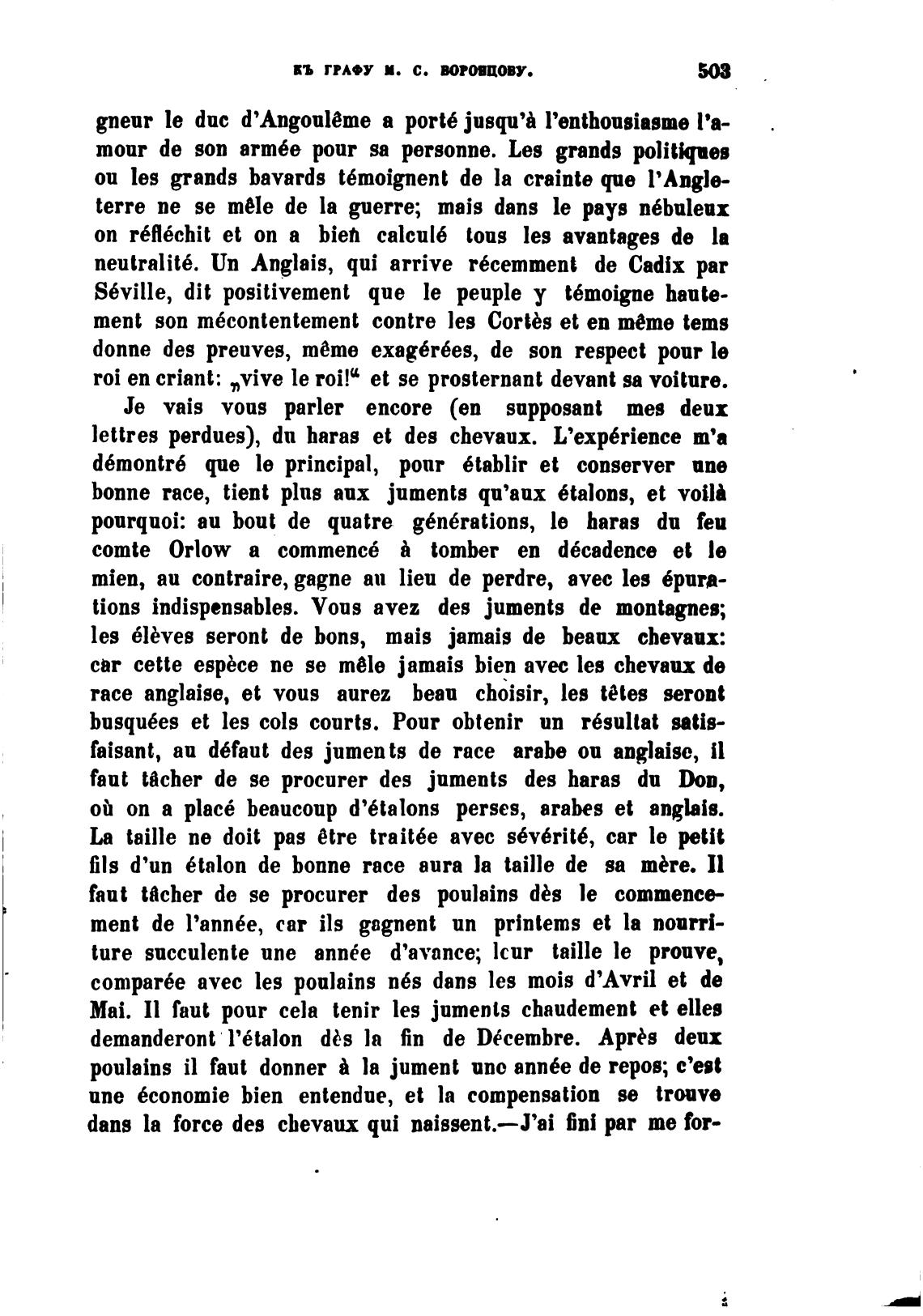 lettres perdues), dn haras et des chevaux. L'exp6rience т'а