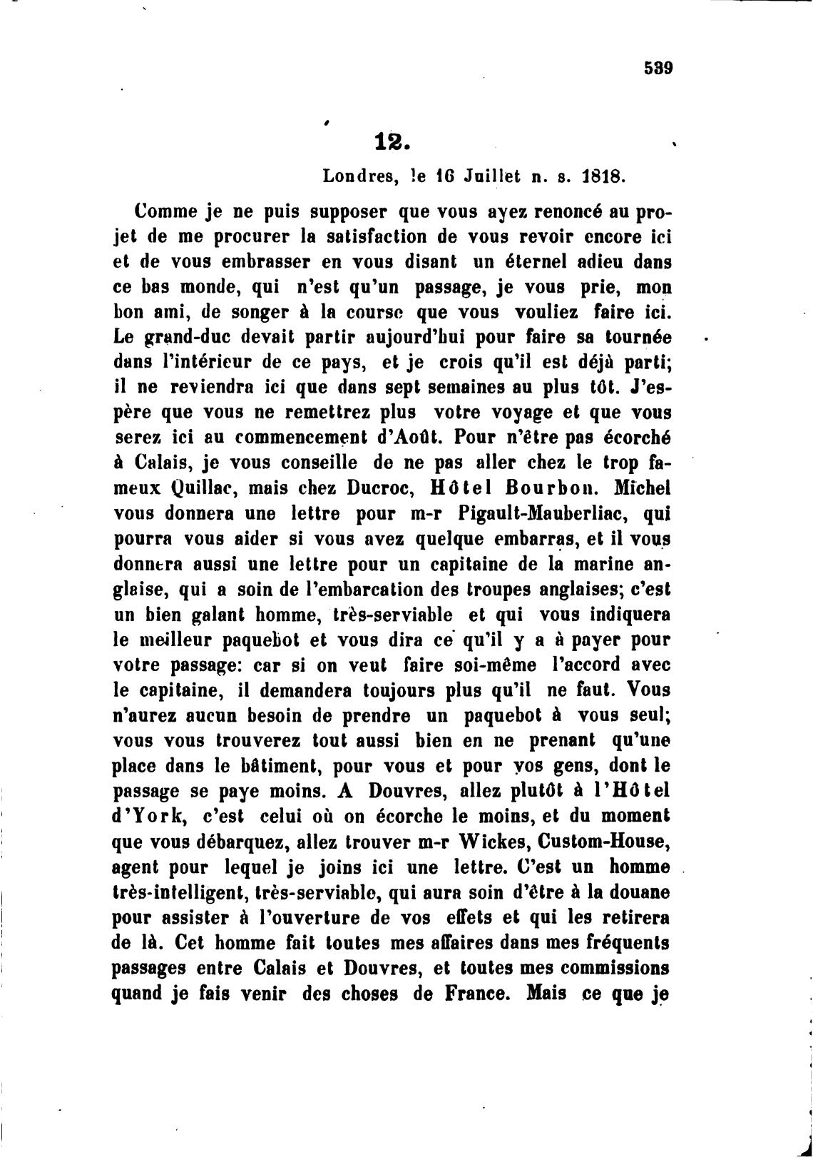 passages entre Calais et Douvres, et toutes mes commissions