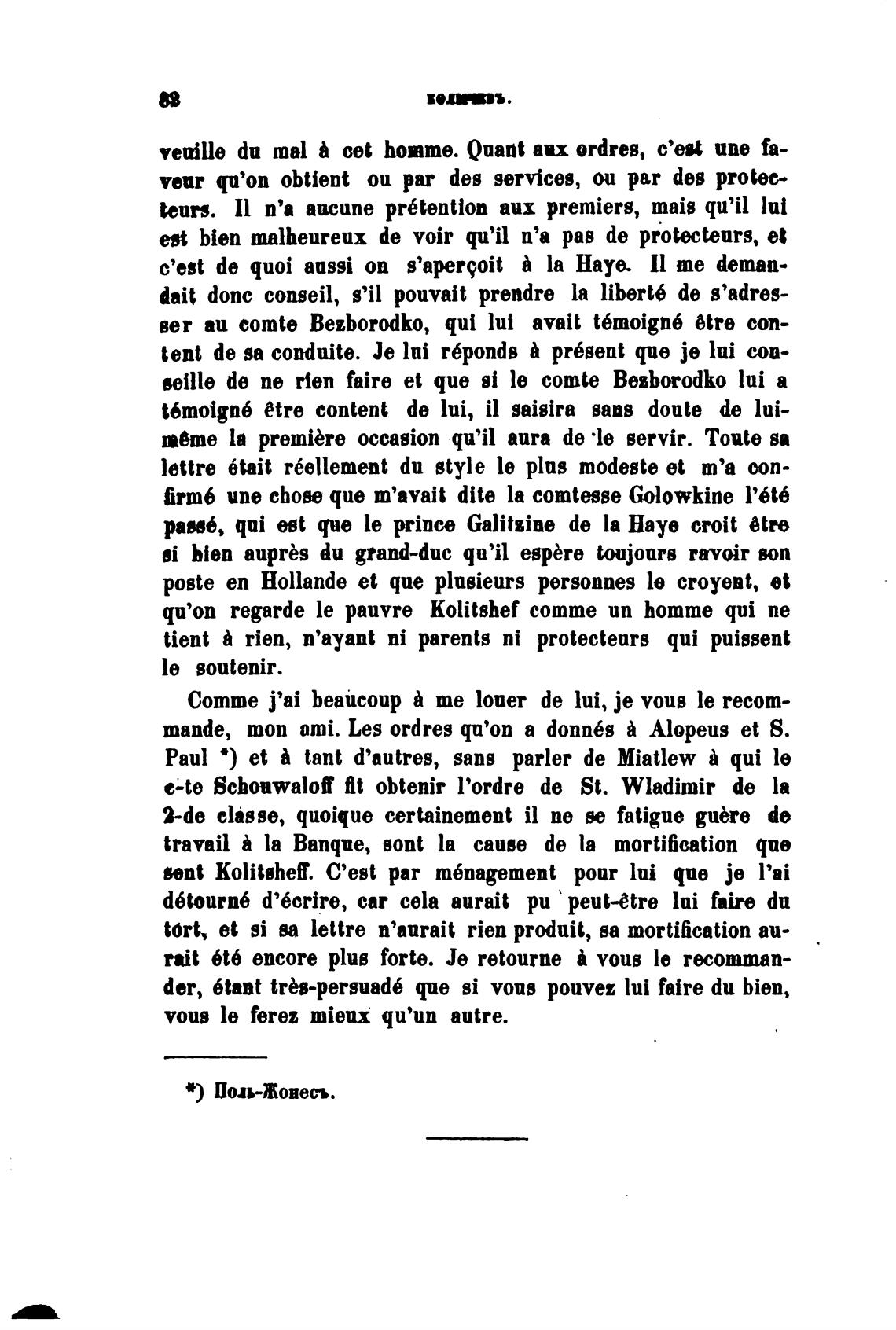 вег аи comte Bezborodko, qui lul avait t6moign6 6tre соп-