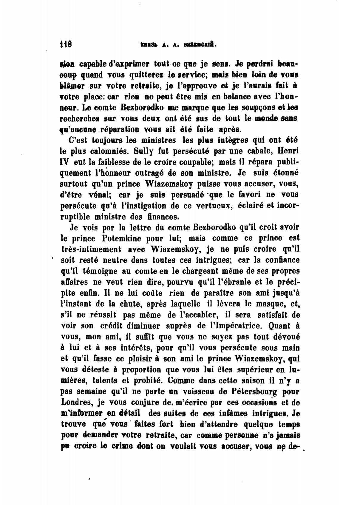 tres-intimement avec Wiazemskoy, је пе puis croire qu'il