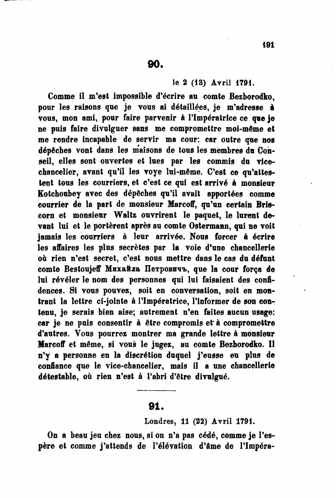 Сотте il m'est impossible d'6crire аи comte Bezborodko,