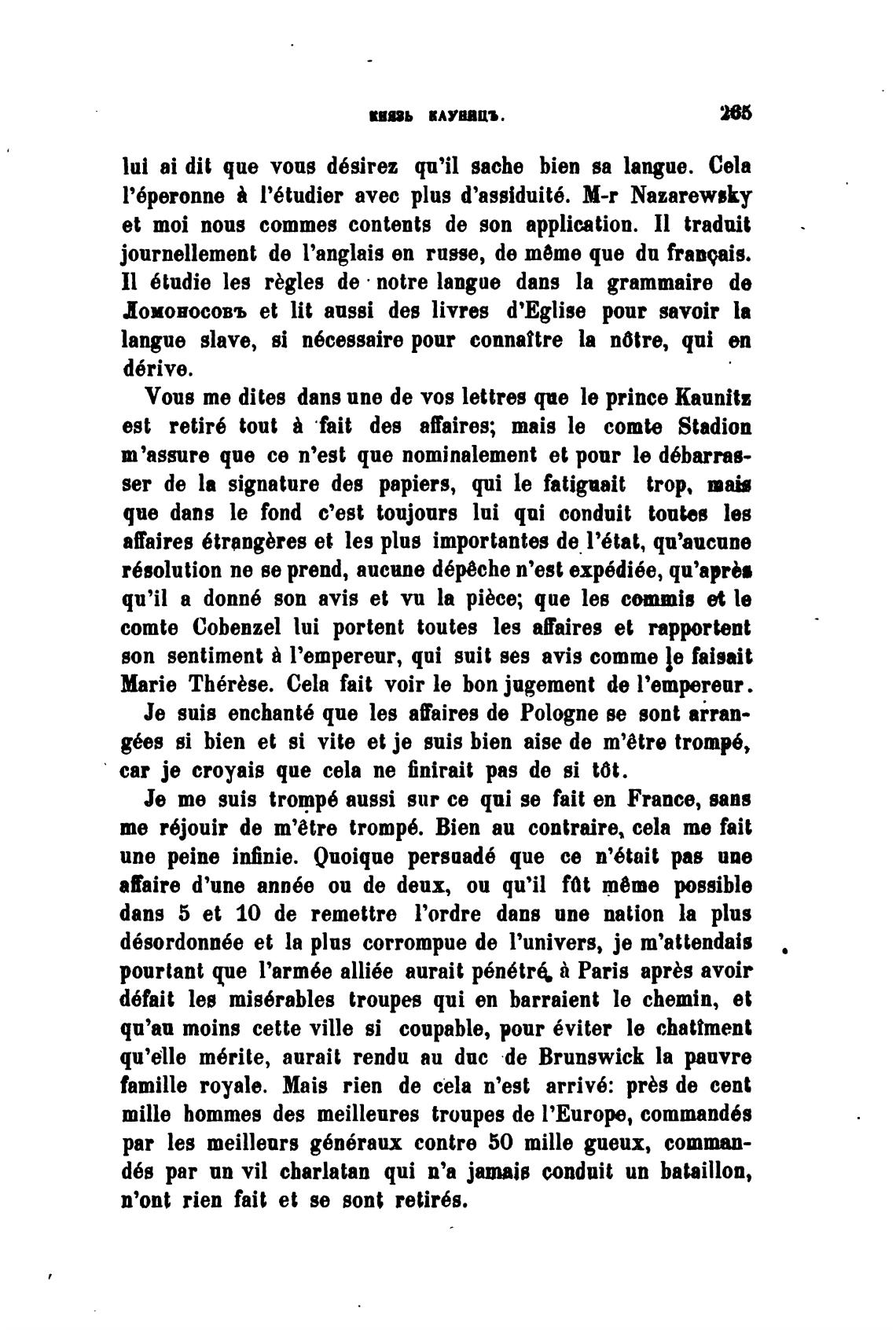 Vous те dites dans ипе de vos lettres que le prince kaunitz