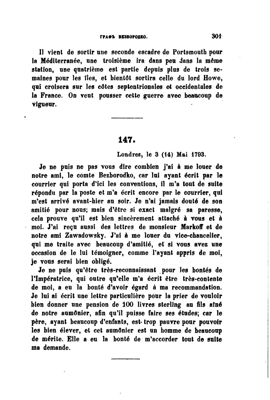 notre ami, le comte Bezborodko, саг lni ayant 6crit par le