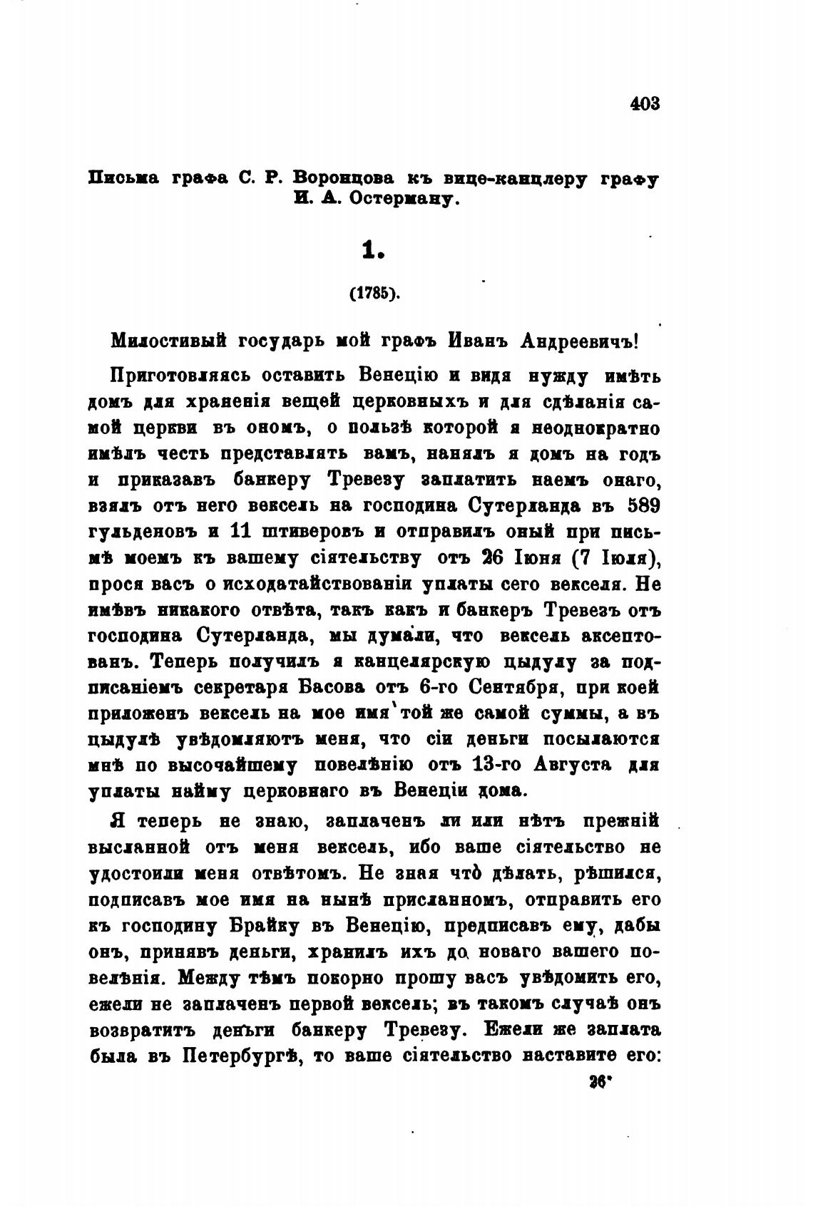 Письма гра•а С. Р. Воронцова кь вице-канцлеру графу