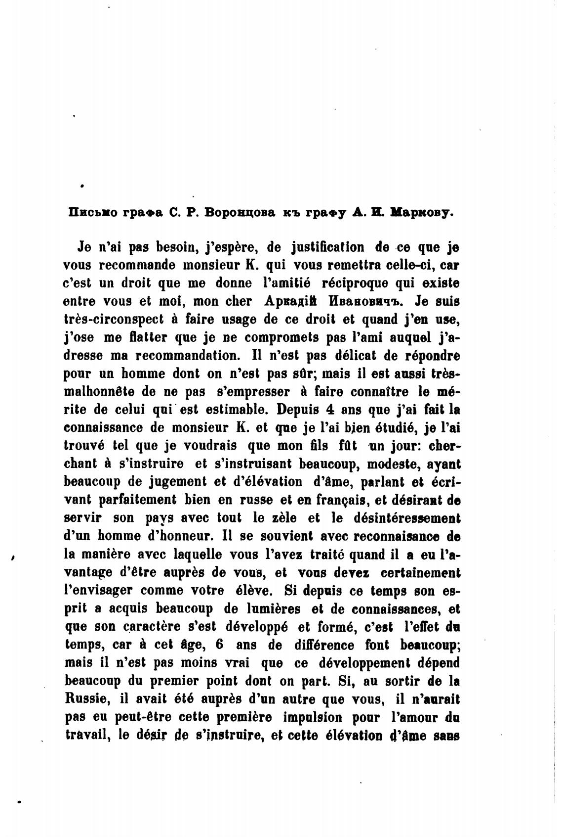 Письмо гра•а С. Р. Воронцова кь грач А. И. Маркову.