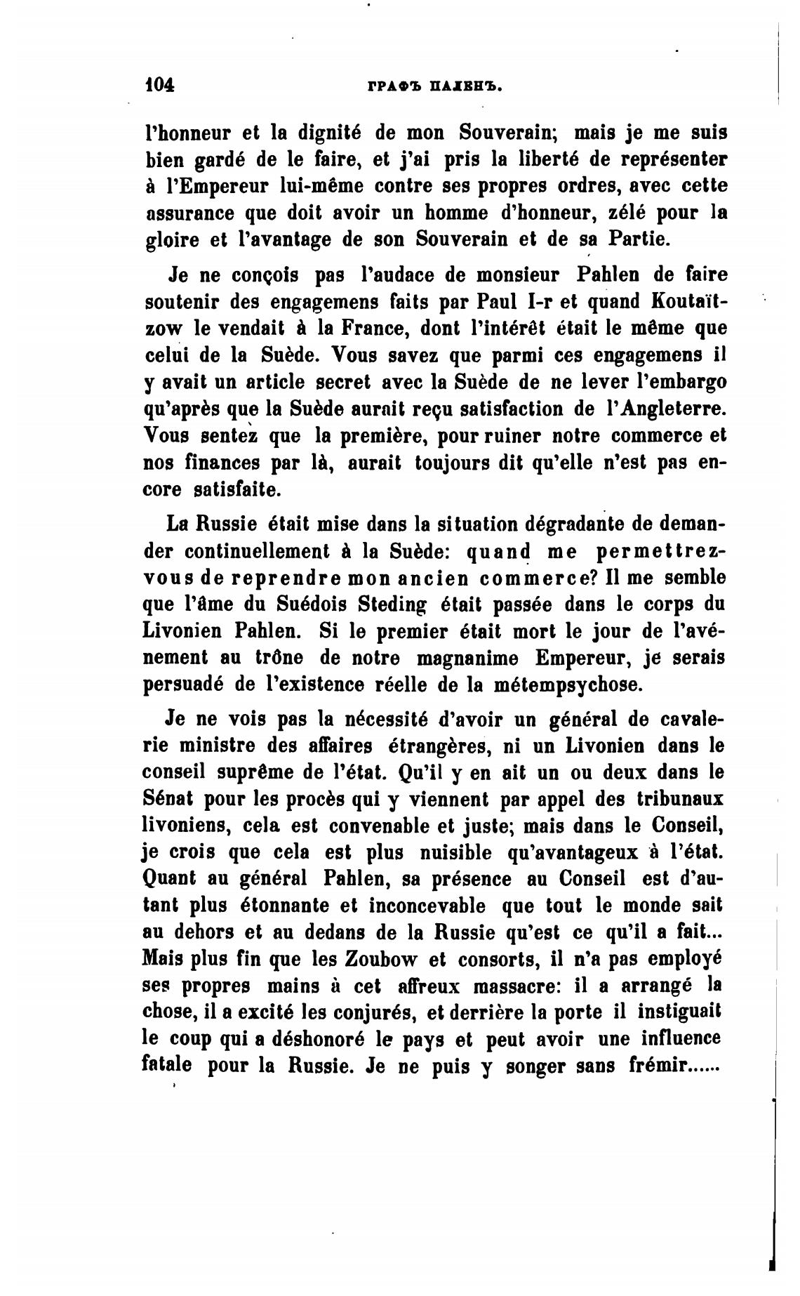 Је пе conqois pas l'audace de monsieur Pahlen de faire