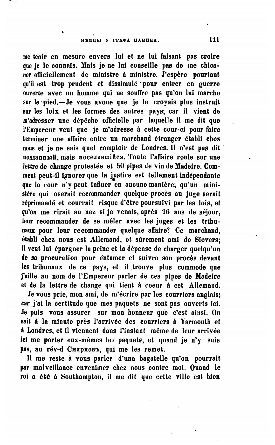 Је vous prie, топ ami, de m'6crire par les courriers anglais;