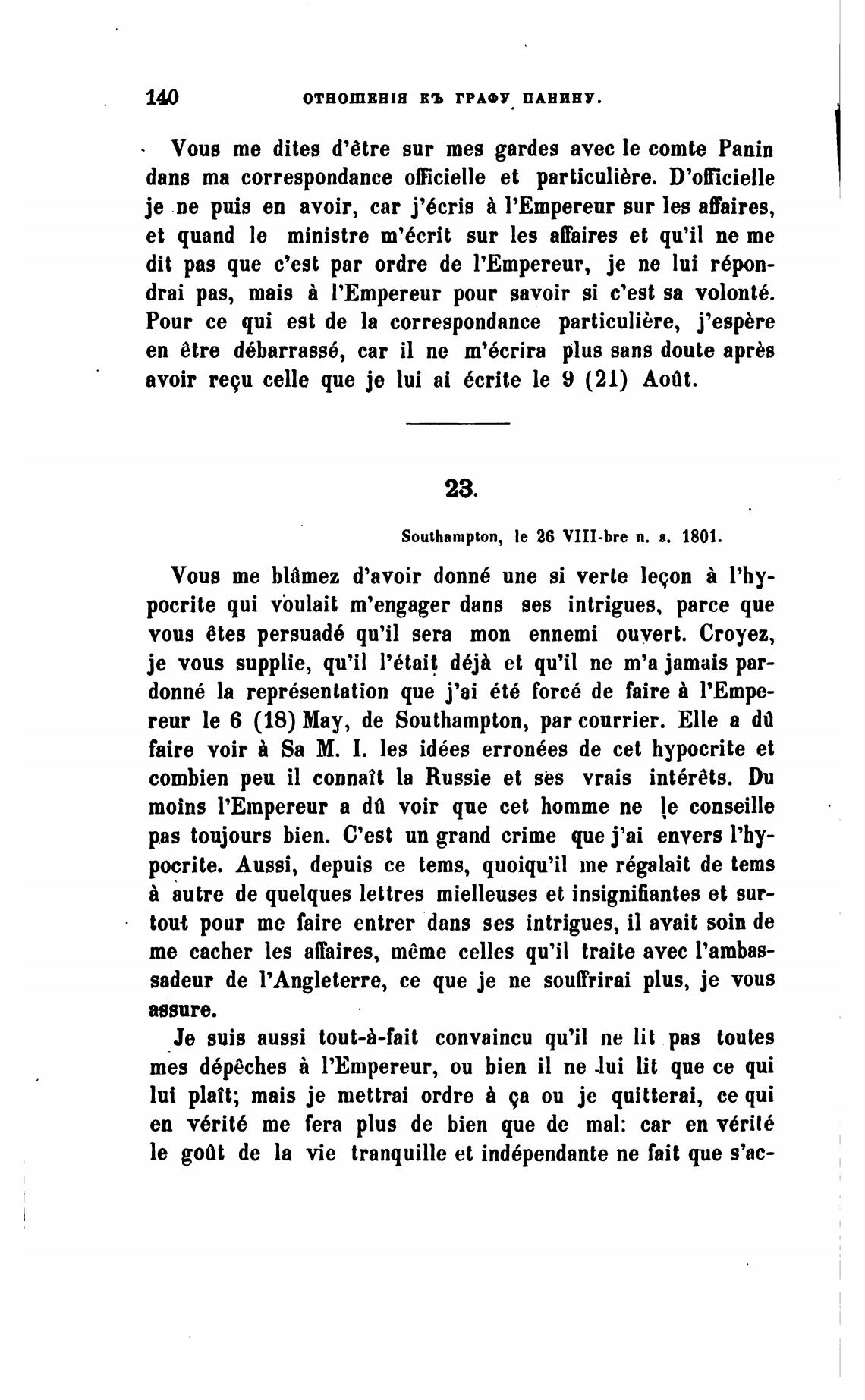 Vous те dites d'6tre sur mes gardes avec le comte Panin