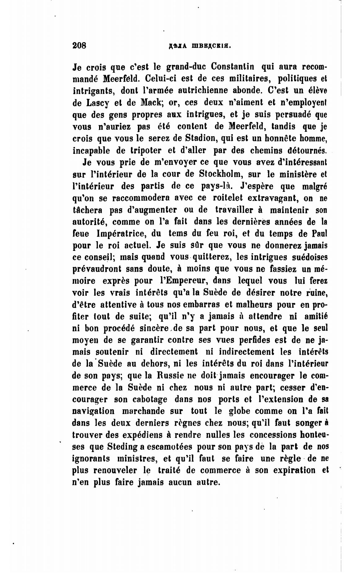 се conseil; mais quand vous quitterez, les intrigues su6doises