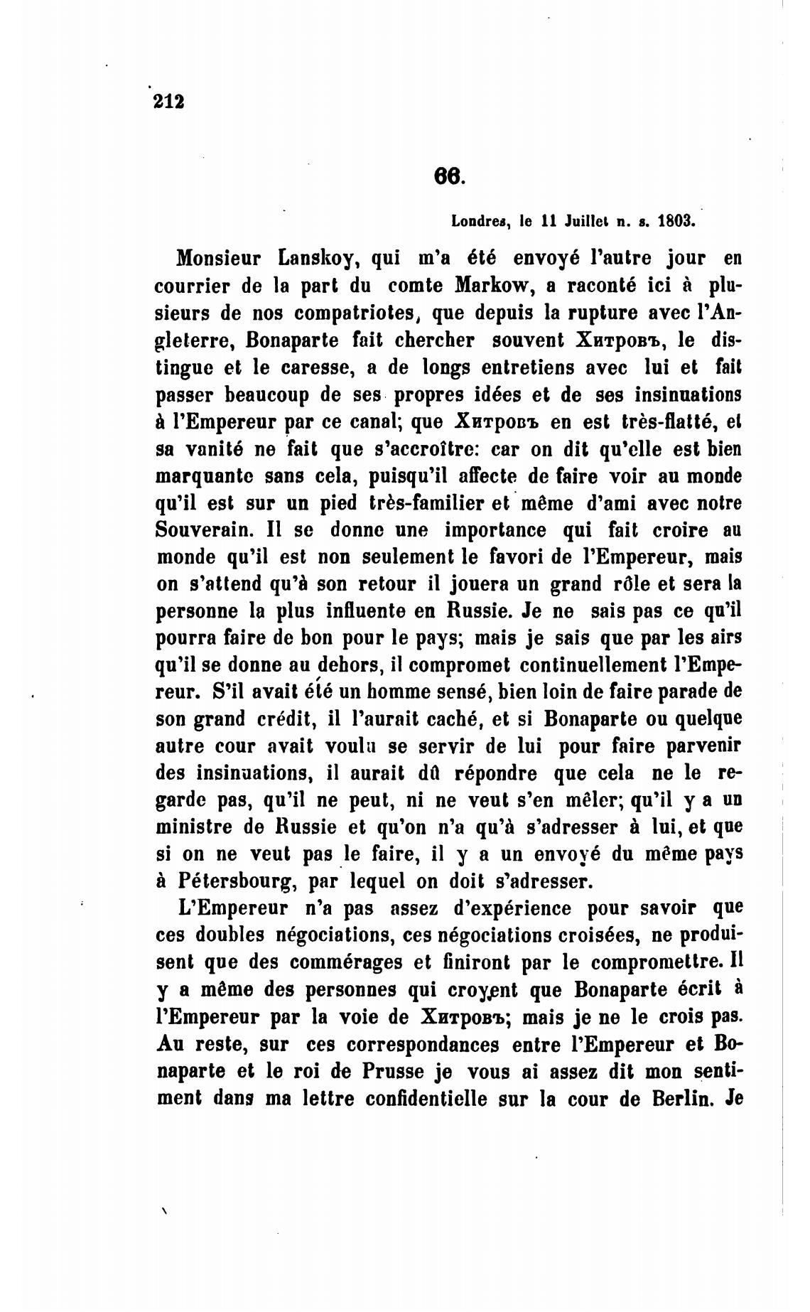 l'Empereur par la voie de Хитровъ; mais је пе le crois pas.