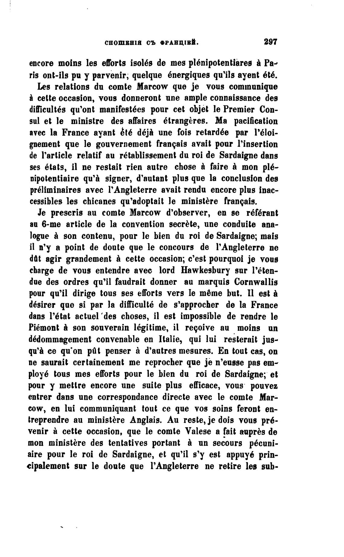 Је prescris аи comte Marcow d'observer, еп se r6f6rant
