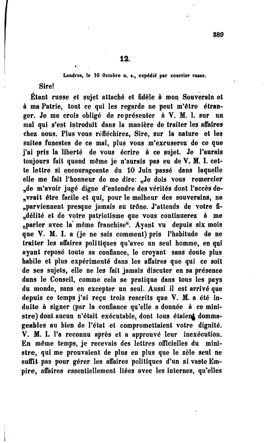 depuis се temps j'ai requ trois rescrits que V. М. а 6t6 in-
