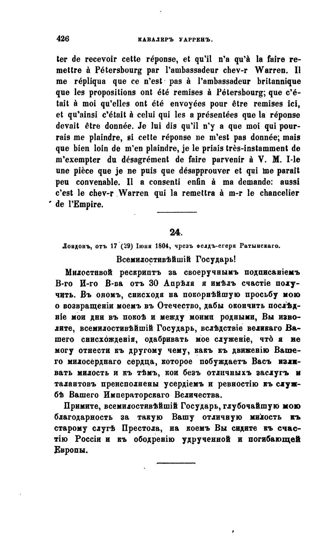 довдонъ, отъ 17 (29) 1юнв 1804, чрезъ Феиъ-егерн Ратынсваго.
