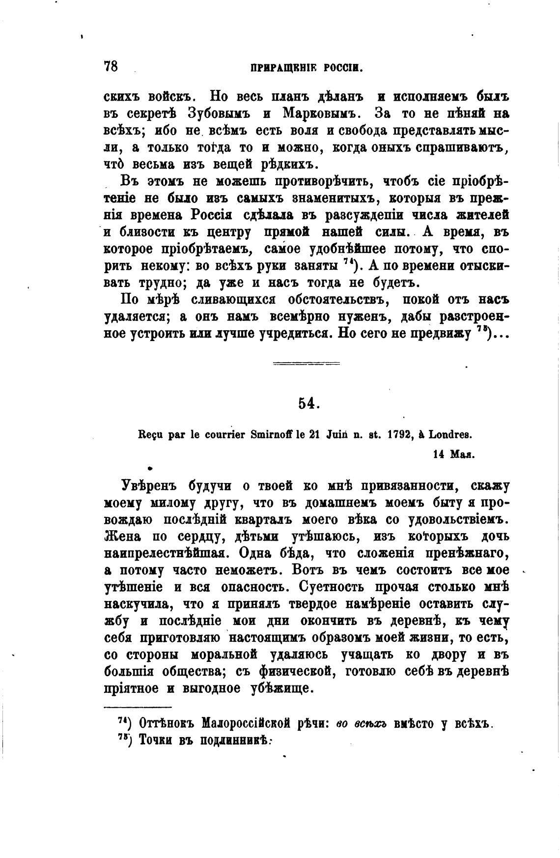 Reeu par le courrier Smirnof le 21 Juid п. Bt. 1792, Londres.