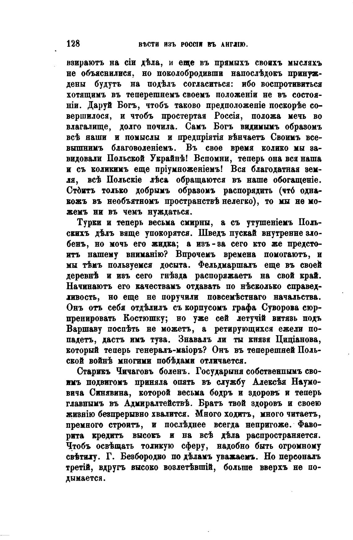 Старивъ Чичаговъ боленъ. Государыня собственпымъ сво-