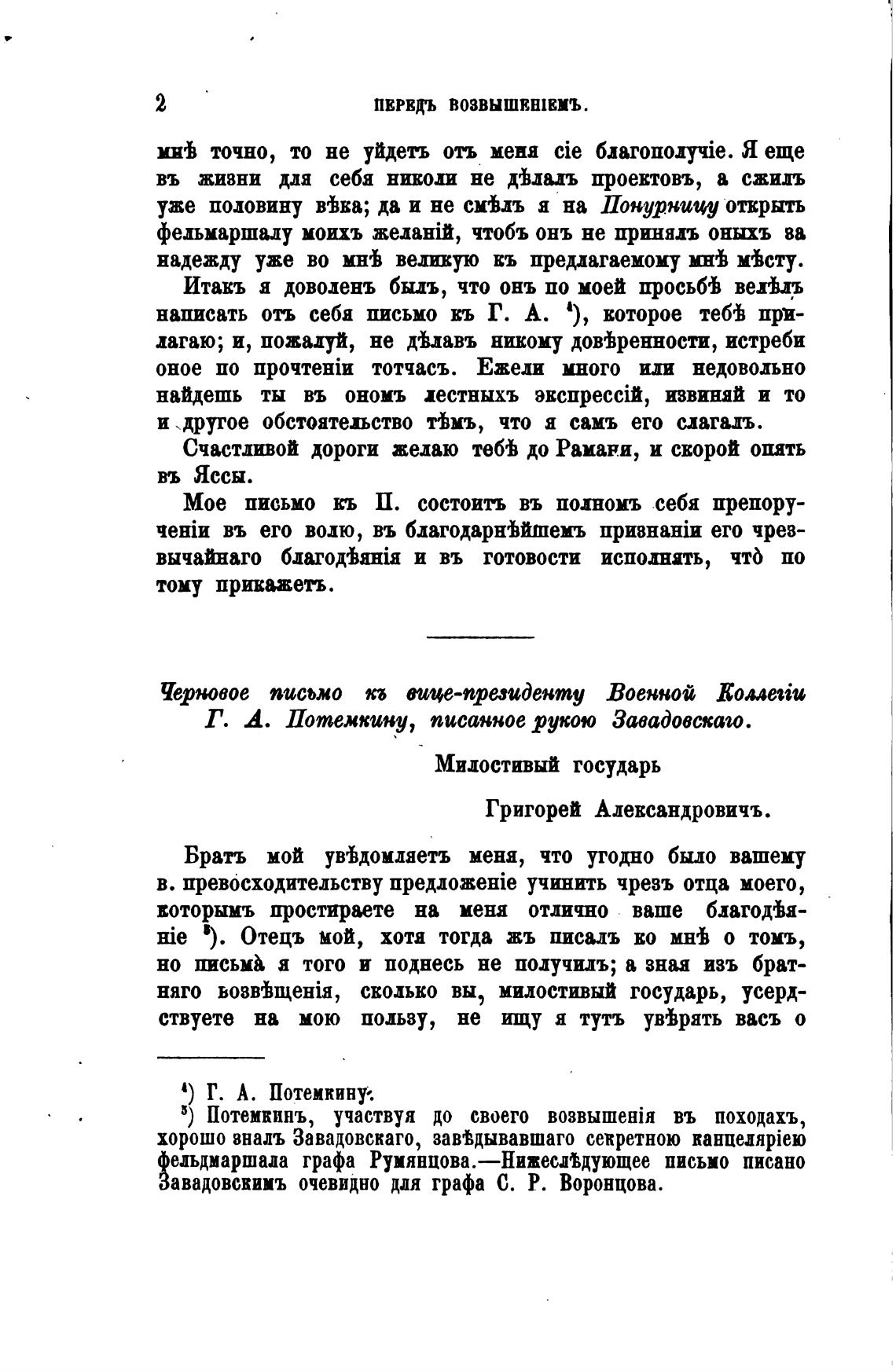 Г. А. Потемкину, писанное рукою Завадовскаш.
