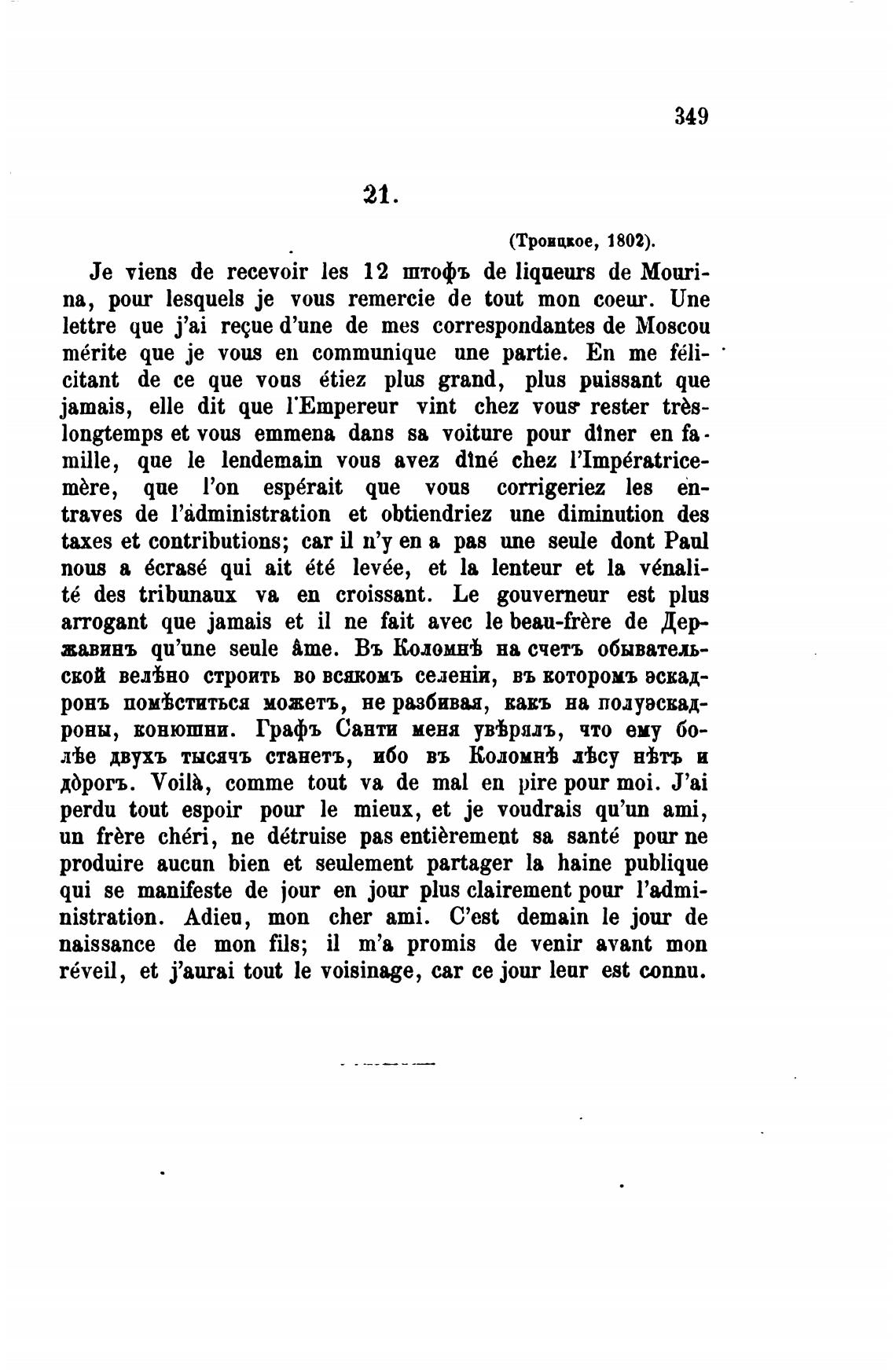 nistration. Adieu, топ cher ami. C'est demain le jour de