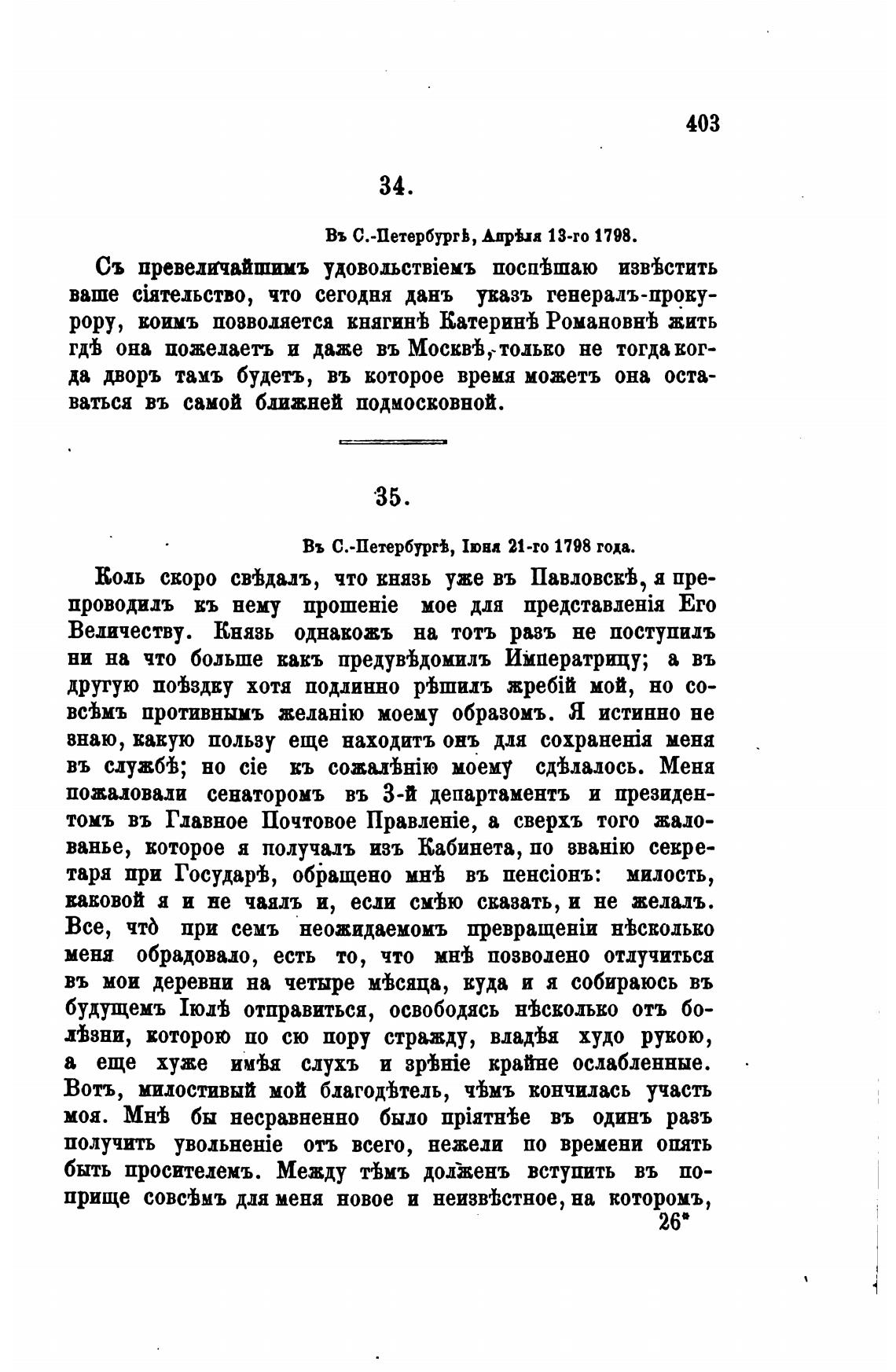 Коль своро свТдалъ, что Князь уже въ Павловскђ, я пре-