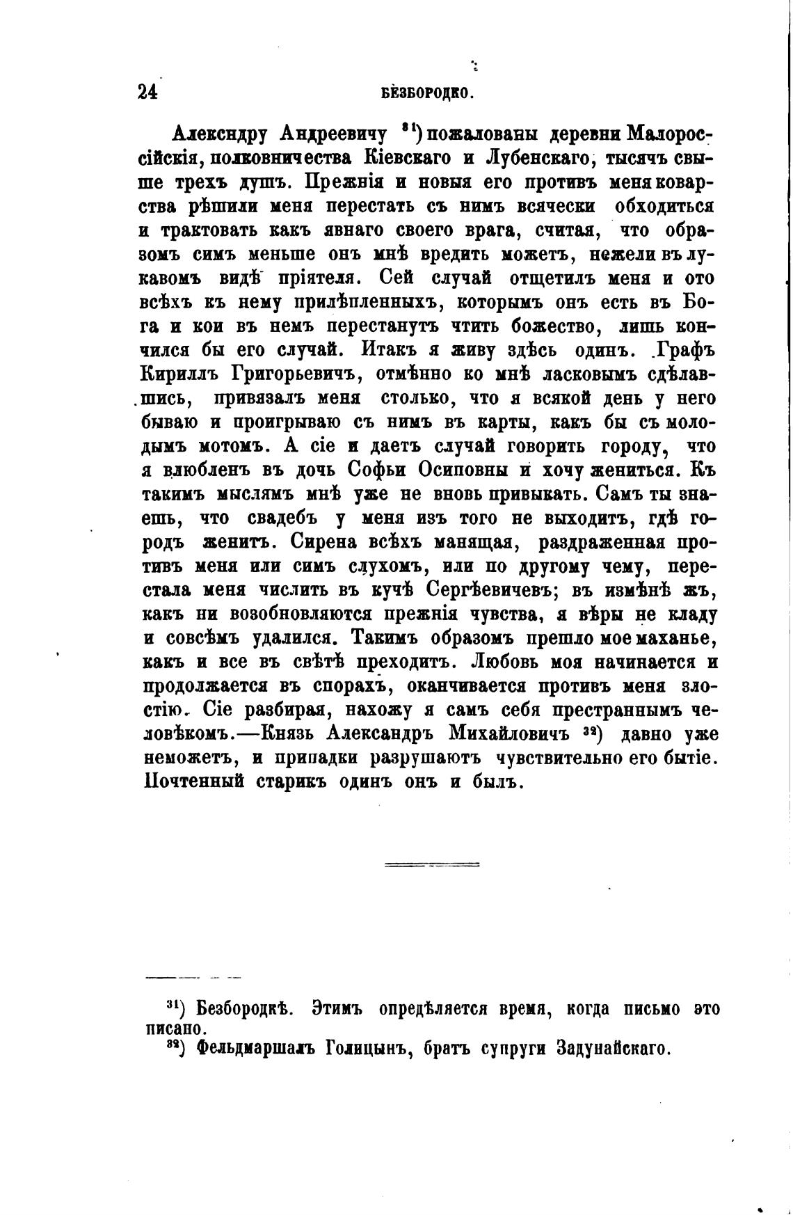 31) Безбородк'В. Этииъ опреджяется время, когда письмо это