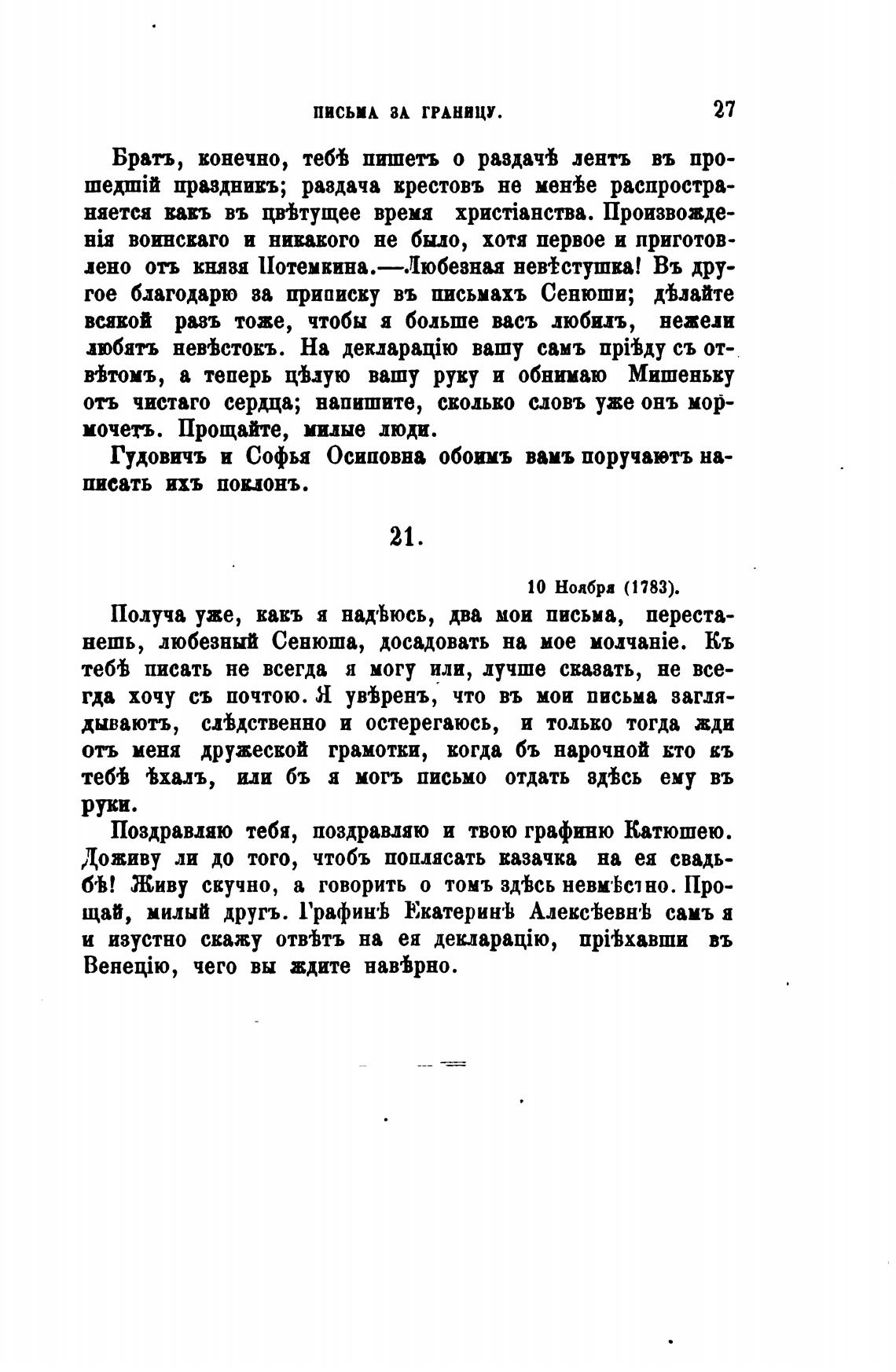 щай, милый другъ. Графин•Ь Екатерин•Ь АлексеЬевн'Ь самъ я