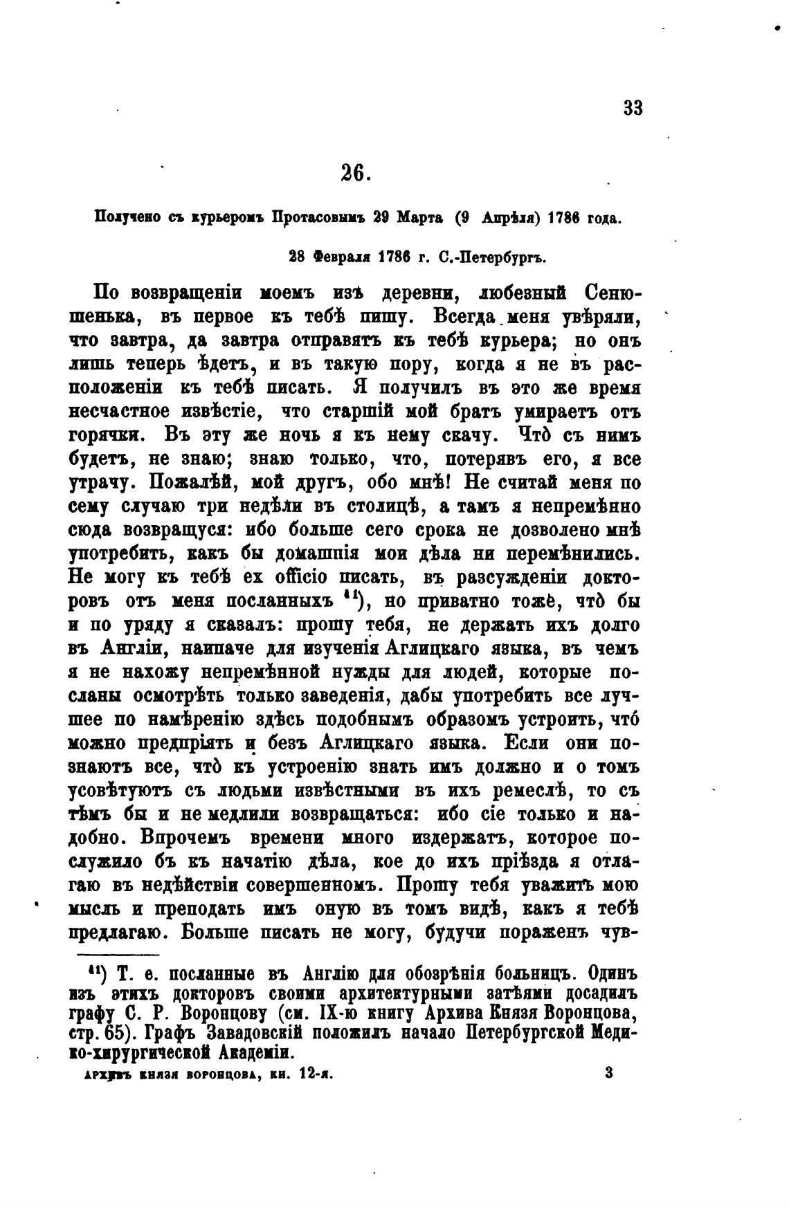 граф С. Р. Воронцову (см. ИХ-ю книгу Архива Князя Воронцова,