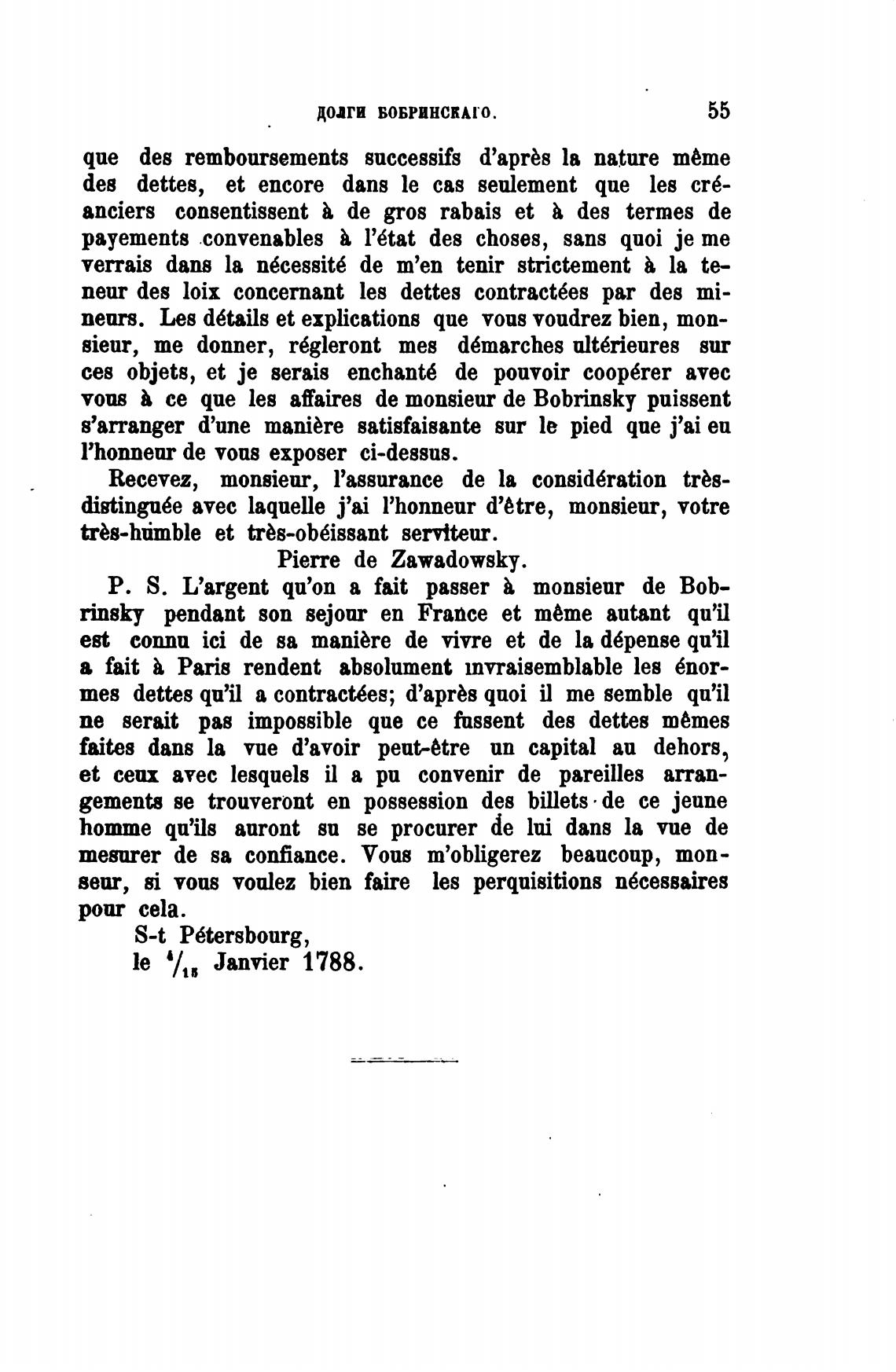 vous се que les afaires de monsieur de Bobrinsky puissent