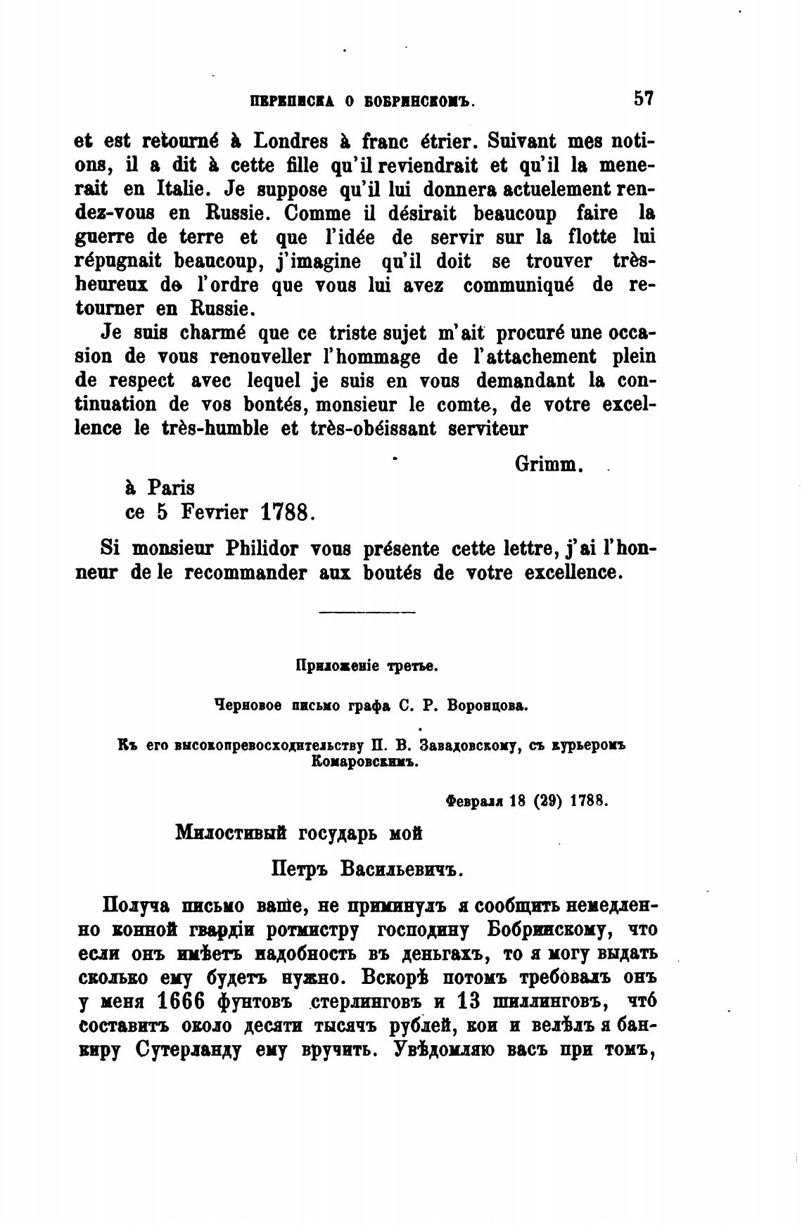 Червовое письмо графа С. Р. Воронцова.