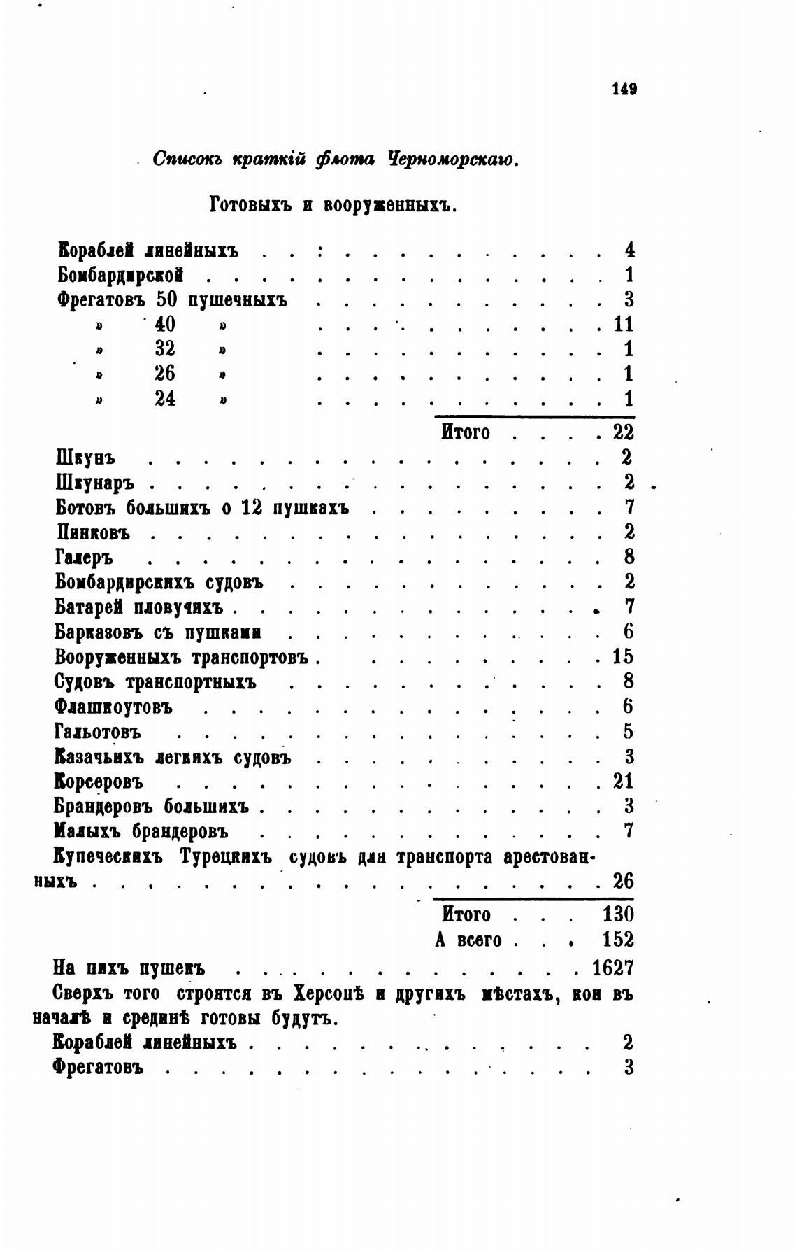 Списокъ флота Черножорскаю.