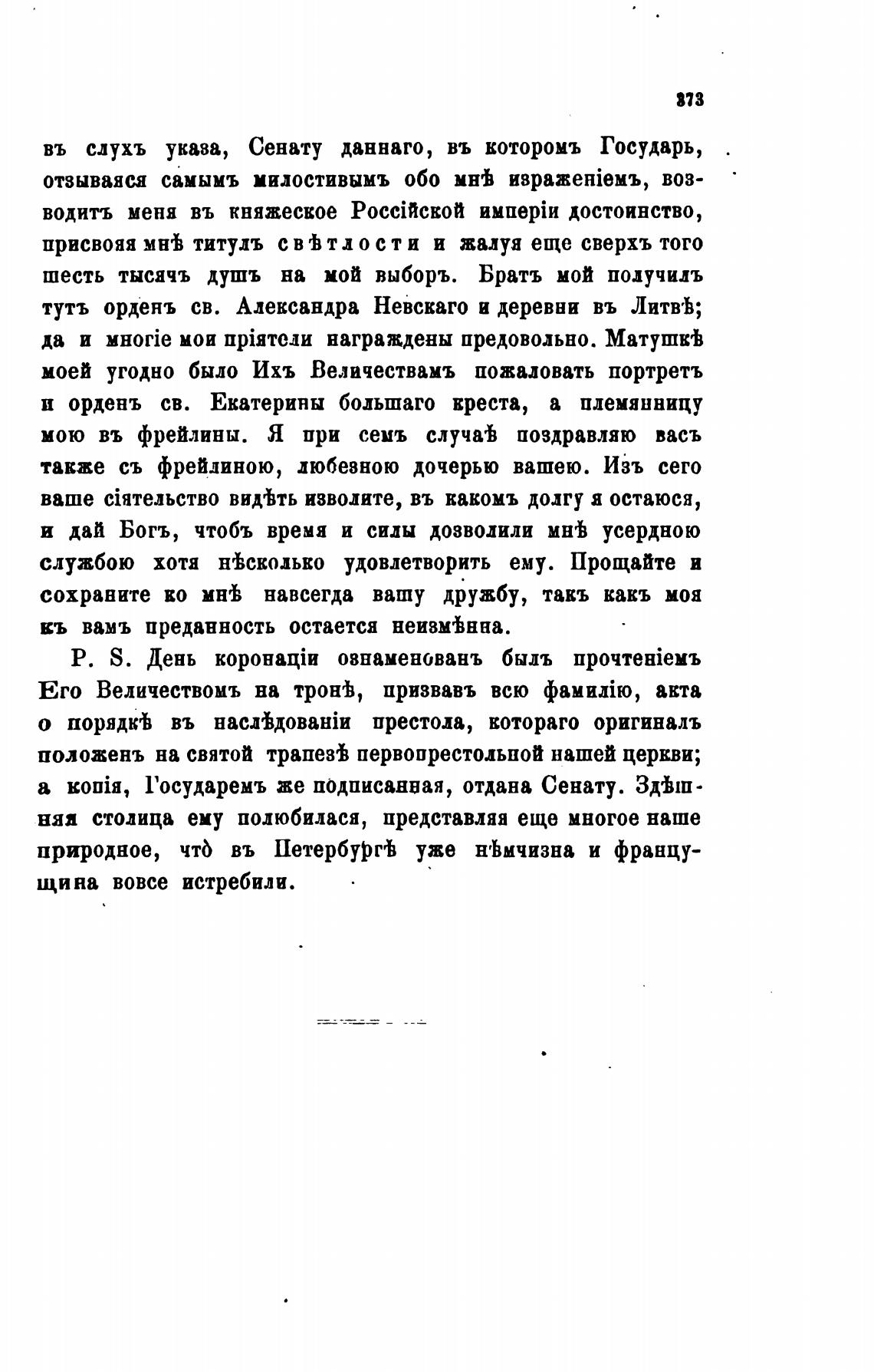 присвояя мнеЬ титуль свђтдости и жалуя еще сверхъ того