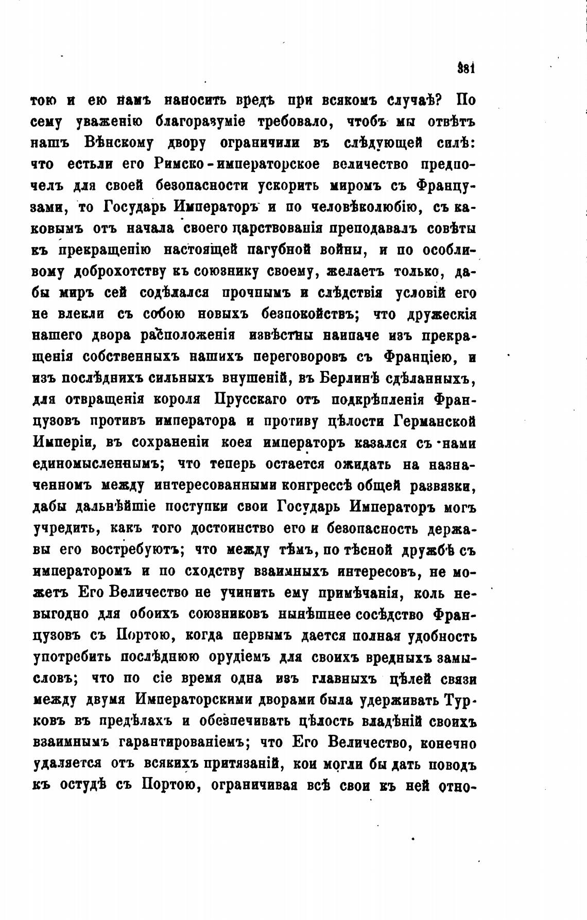челъ для своей безопасности ускорить миромъ съ Францу-