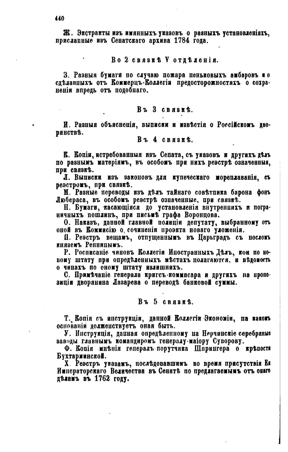 присланные ивъ Сенатсваго архива 1784 года.