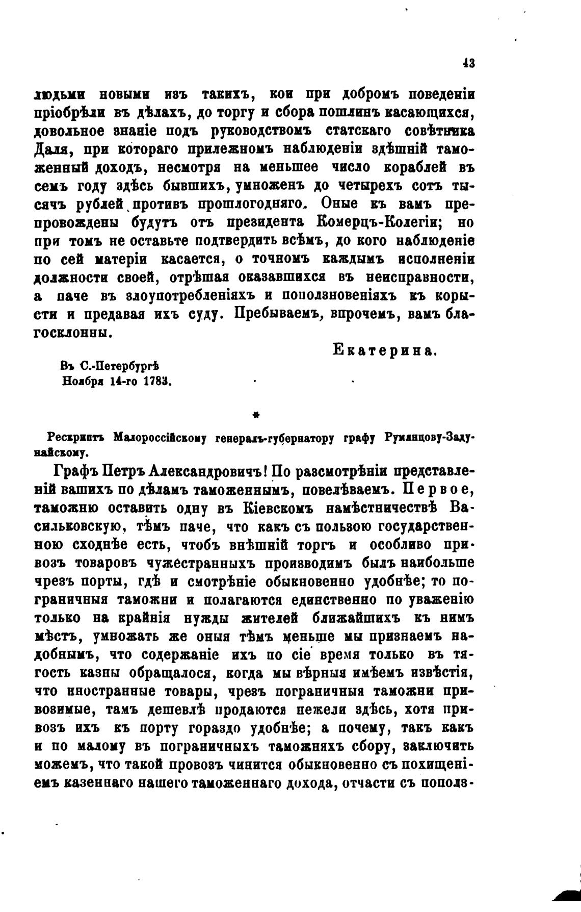 Рескриптъ МалороссТсвому генерал-губернатору графу Румаяцову-Заду.