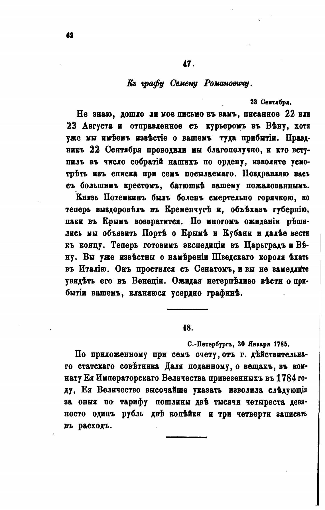 С.-Петербургъ, 30 Январа 1785.