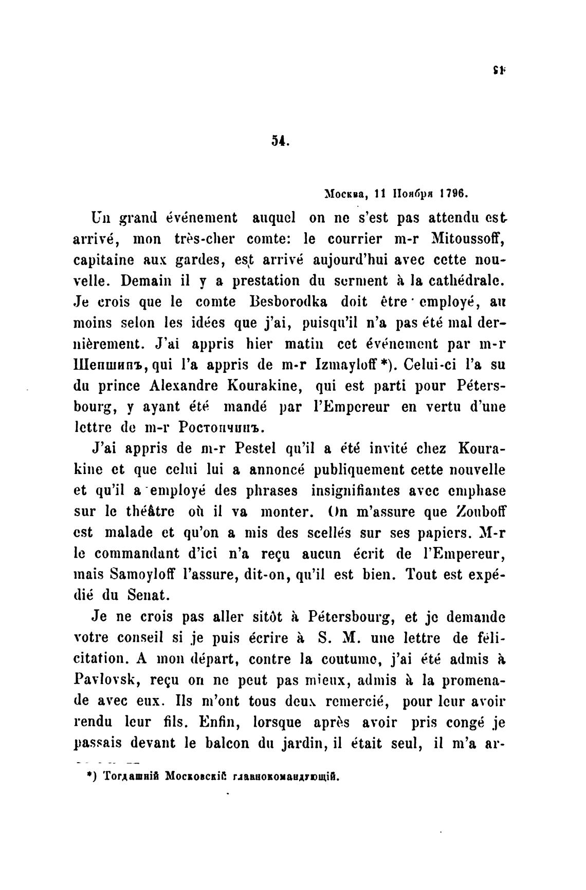 Москва, 11 Ноября 1796.