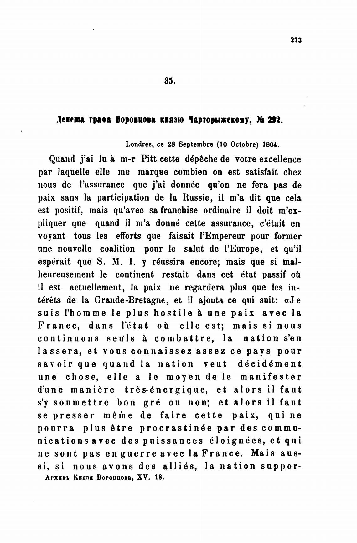 Депеша гра•а Вороицовв к•язю Чарторыжском, 292.