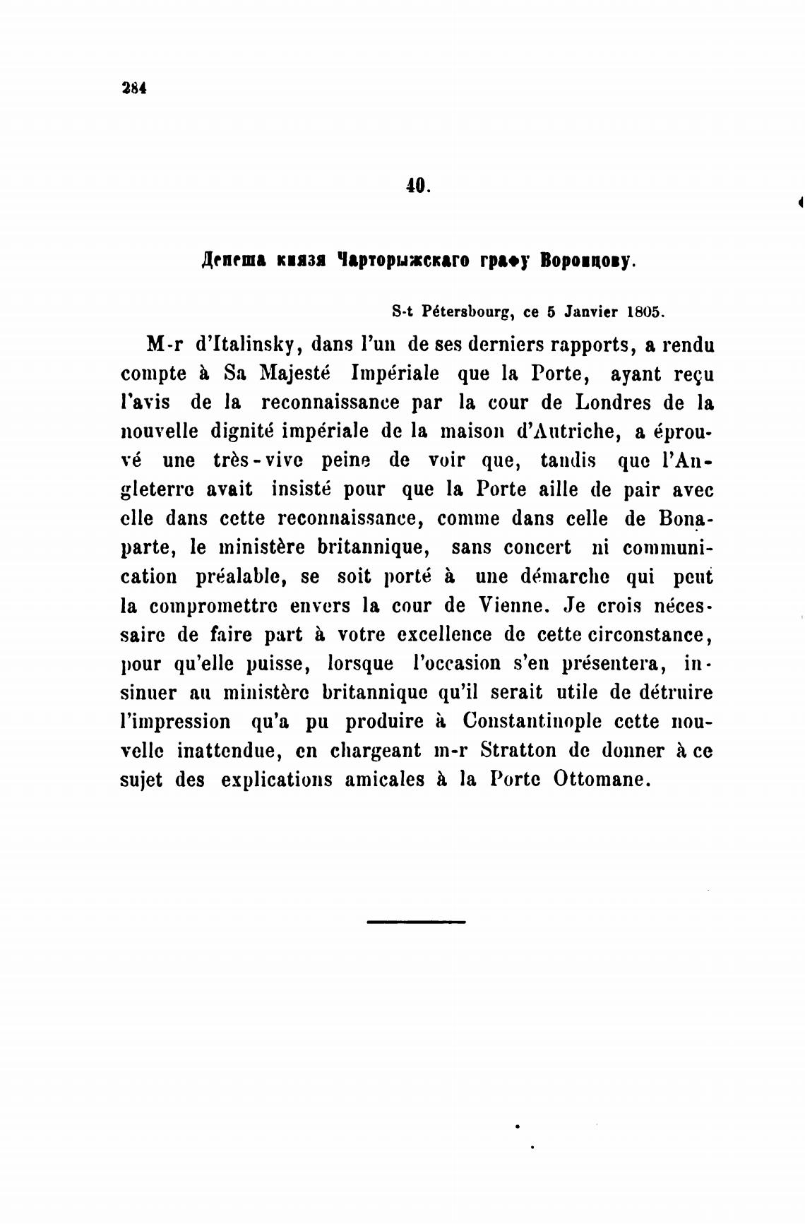 P6tersbourg, се 5 Janvier 1805.