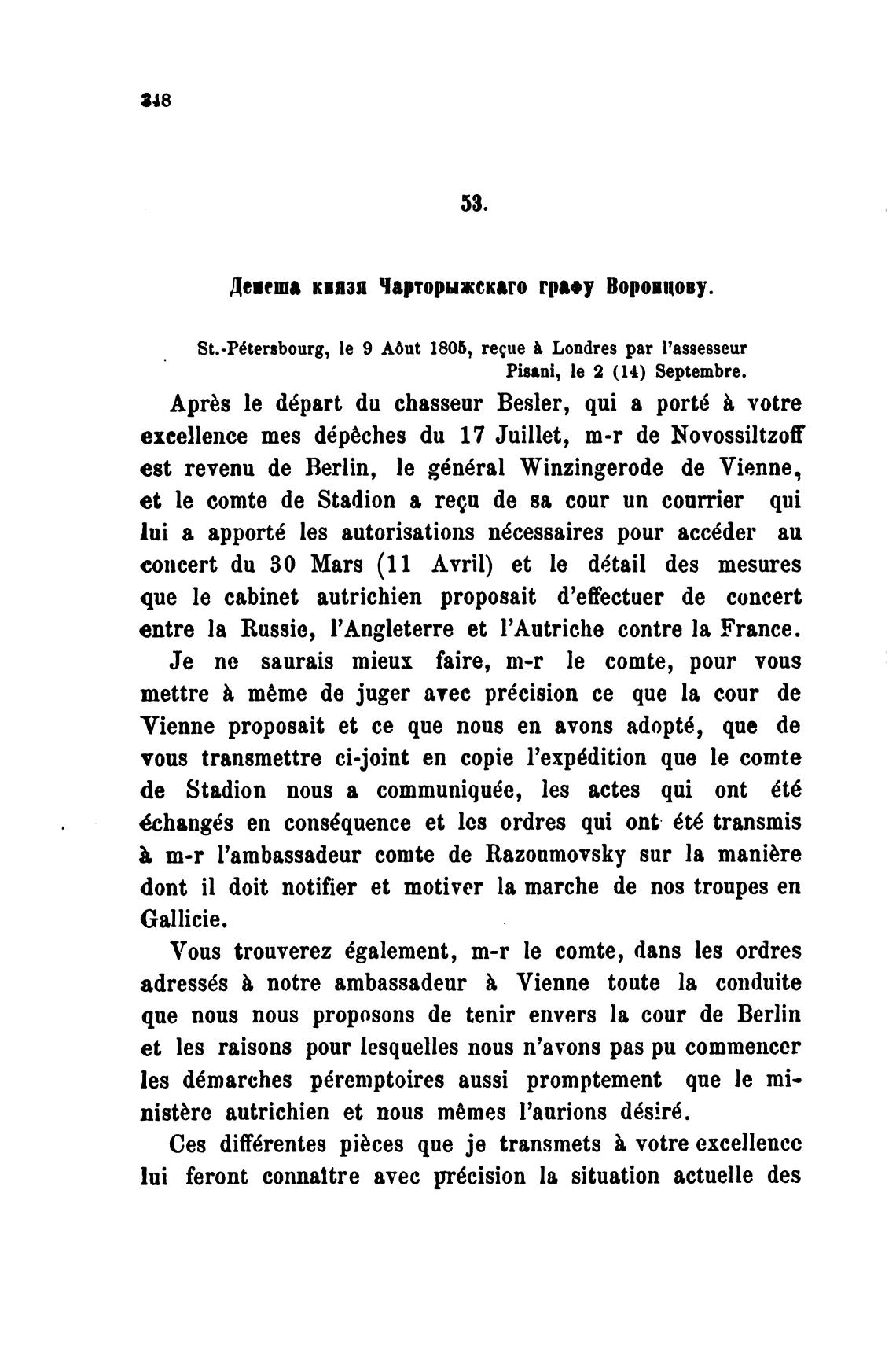 депеша князя Чарторыжскаго гра•у Воронцову.