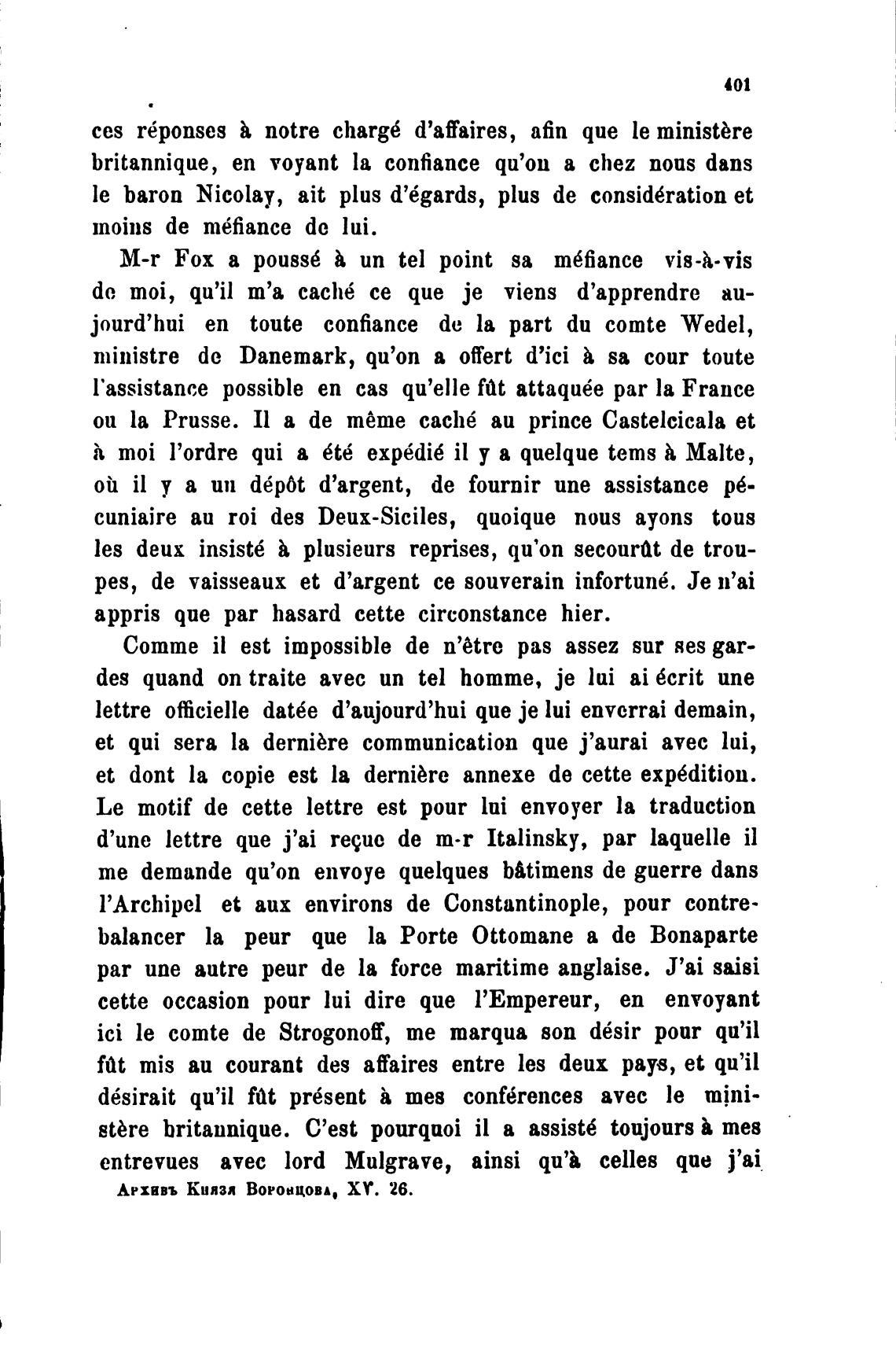 Архавъ Киязя ВОРОНЦОВА, ХУ. 26.