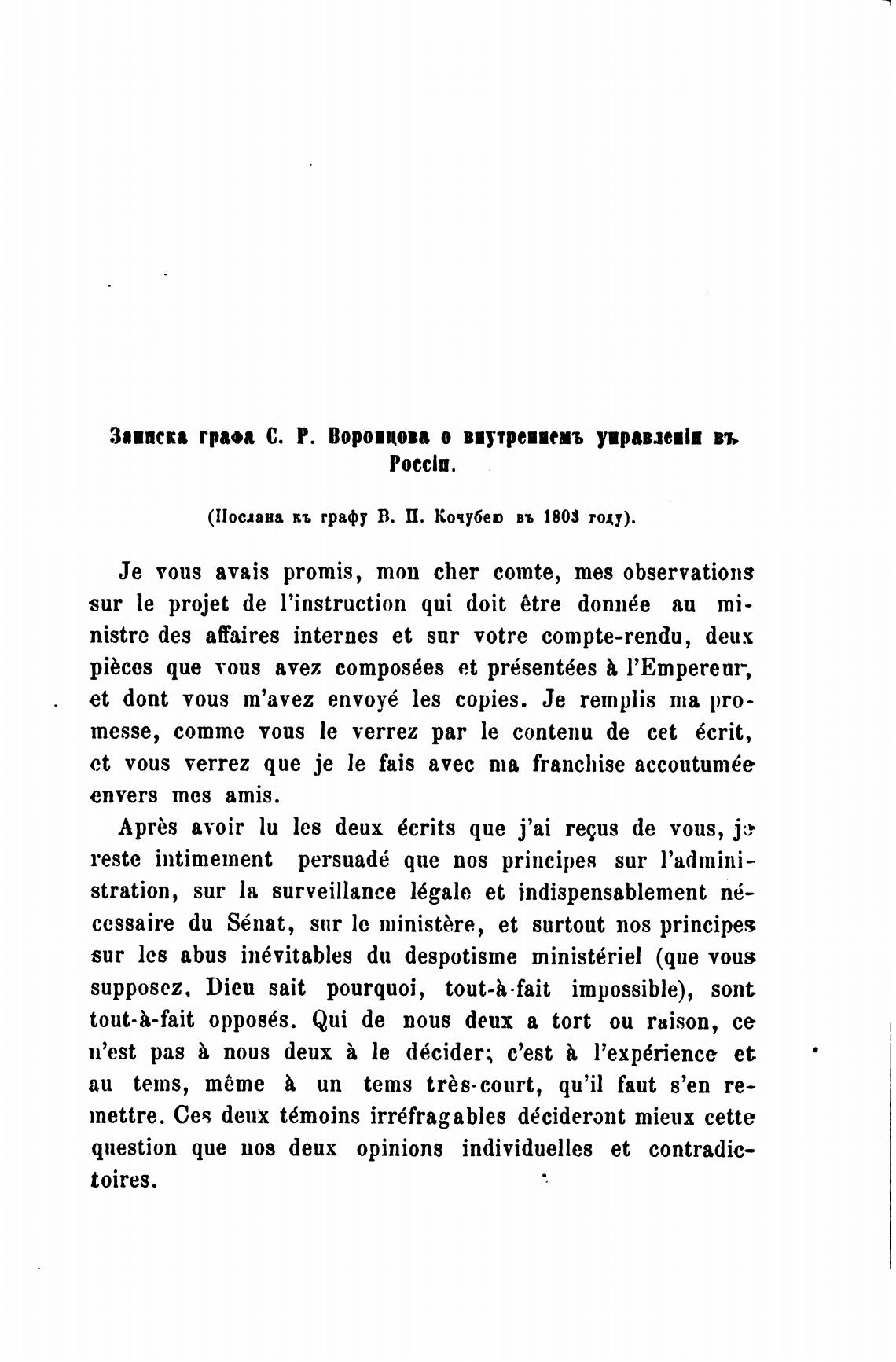 Заинска грап С. Р. Воро•цова о виутрепииъ уиравлеи1п въ