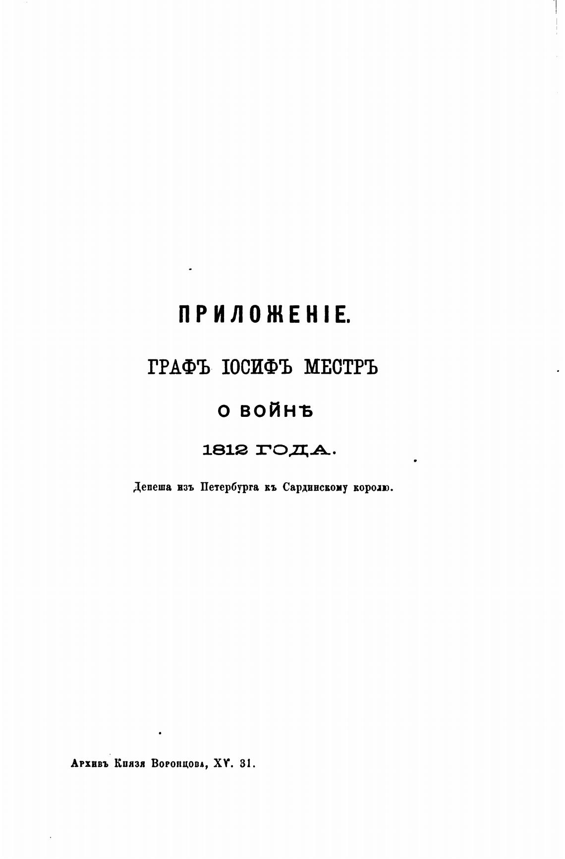Архпвъ Киязя ВОРОНЦОВА, ХУ. 31.